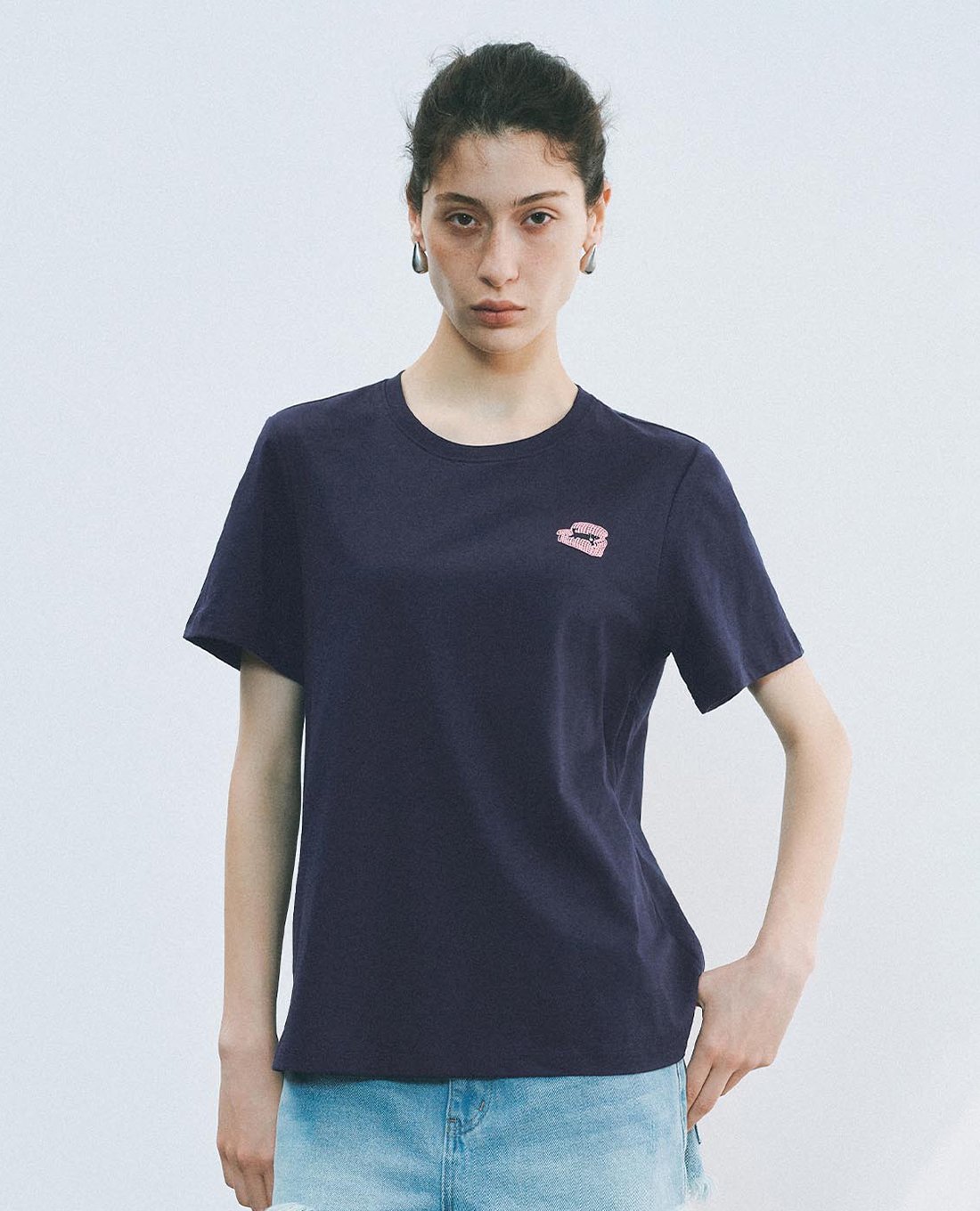 Áo thun nữ cổ tròn tay ngắn phối họa tiết