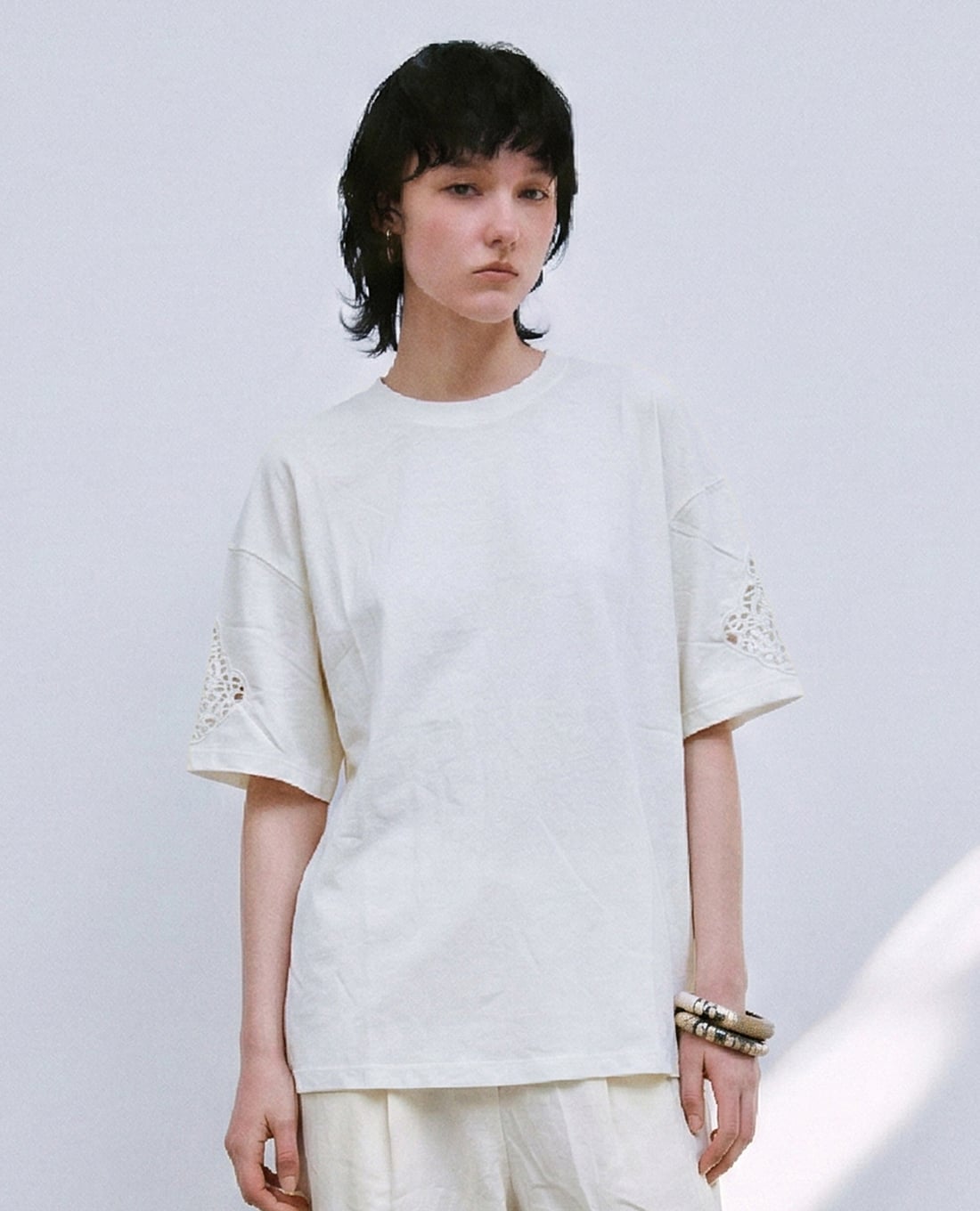 Áo thun nữ cổ tròn tay ngắn phối ren
