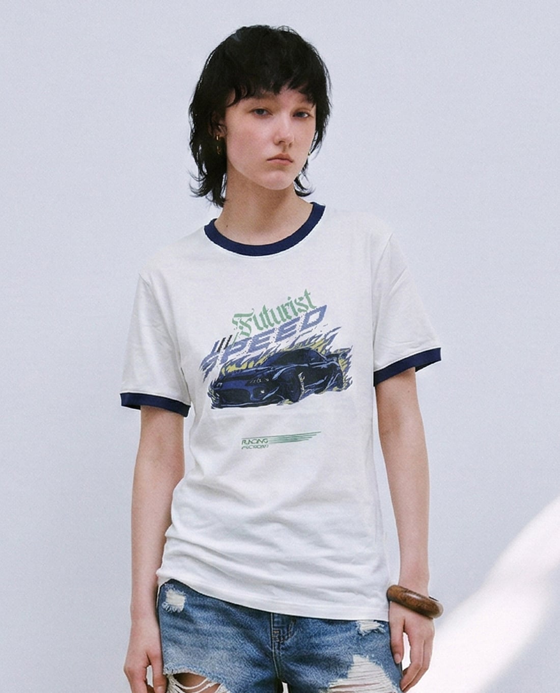 Áo thun nữ cổ tròn tay ngắn phối viền