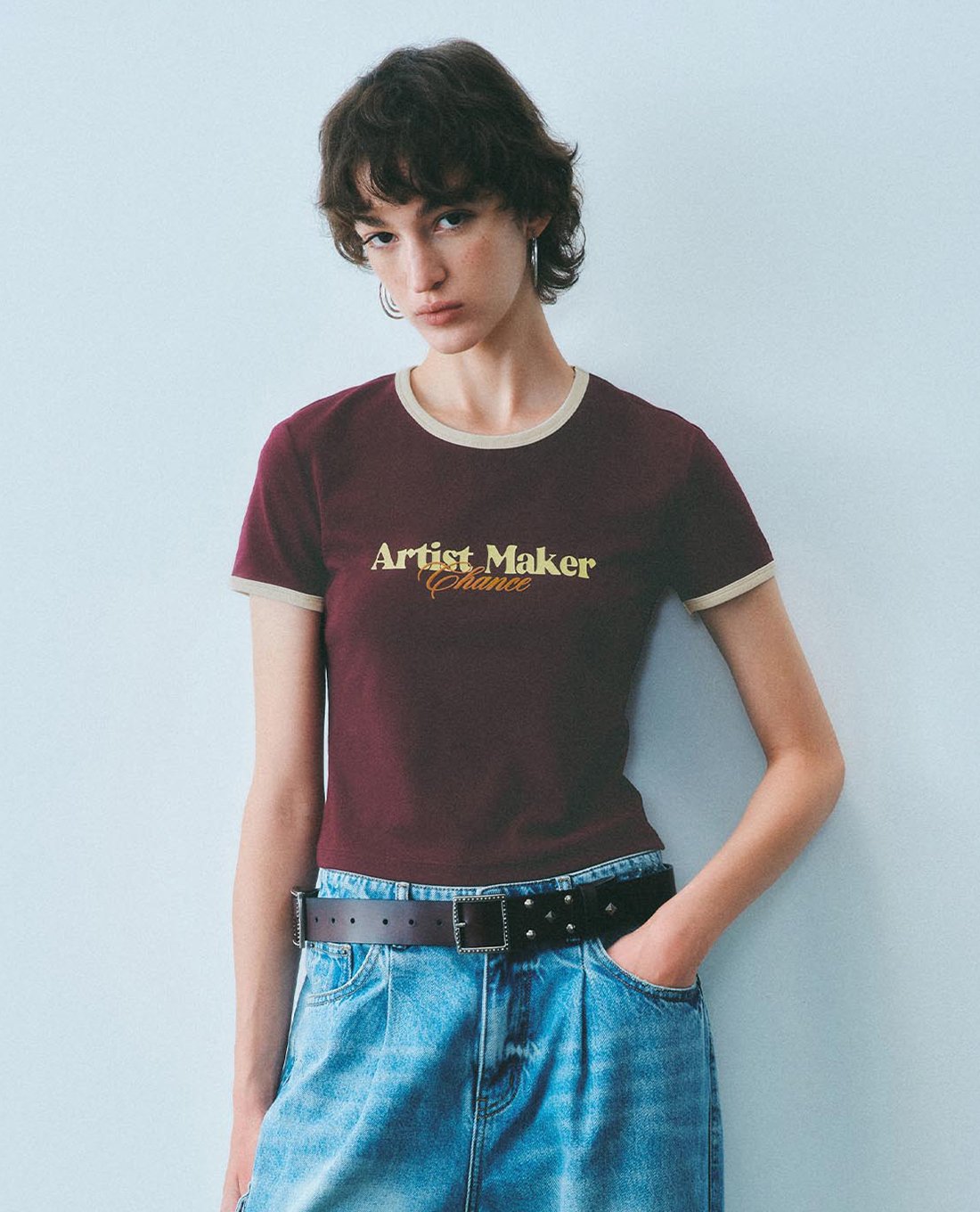 Áo thun nữ cổ tròn tay ngắn phối viền