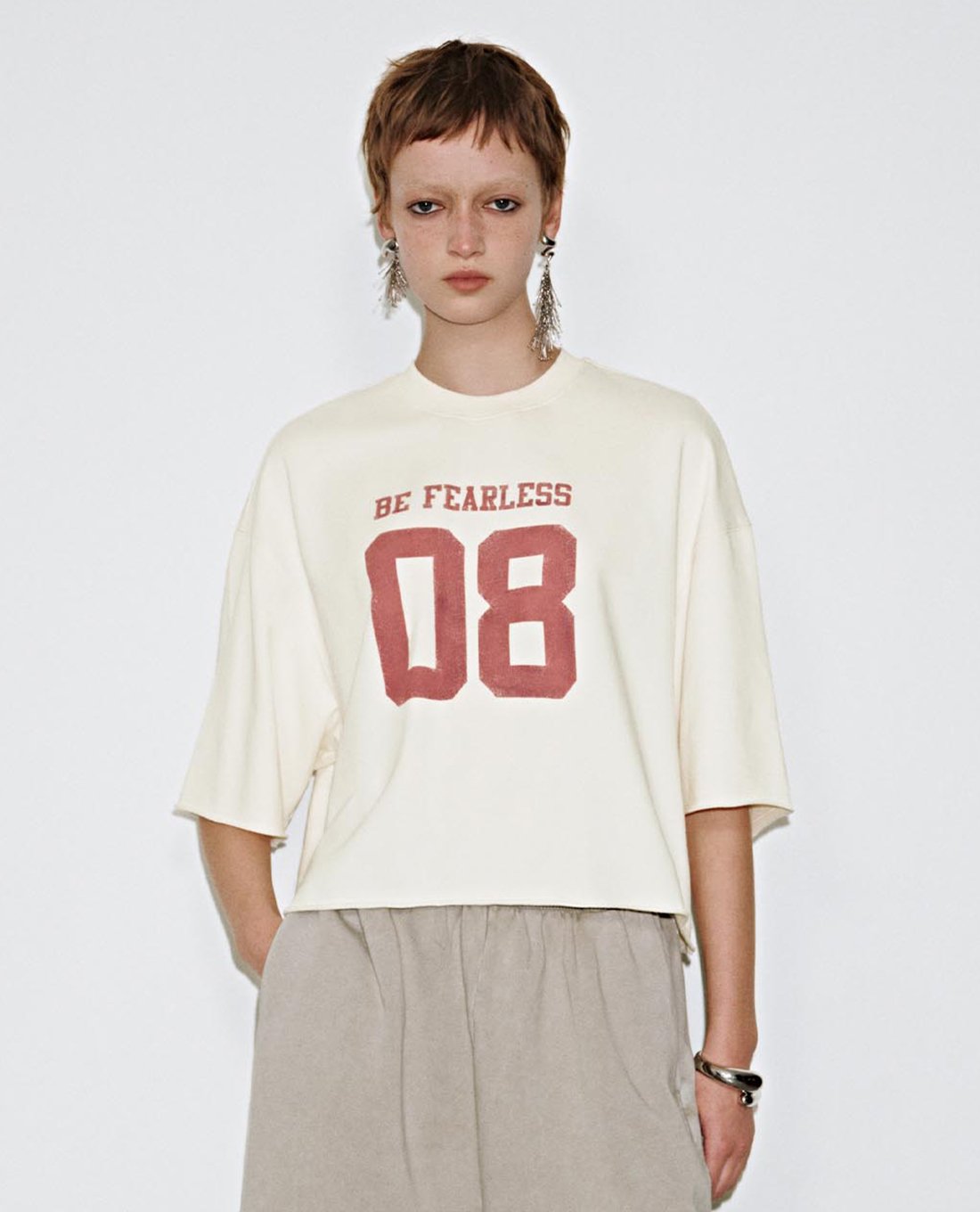 - Họa tiết dòng chữ BE FEARLESS kết hợp với số 08 mang lại cảm giác thể thao, năng động
