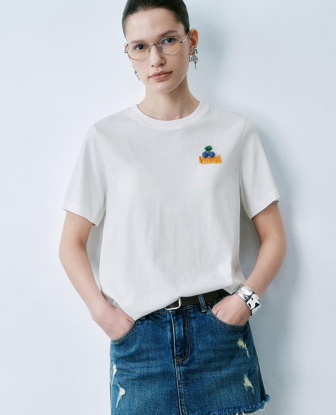 Áo thun nữ cổ tròn tay ngắn thêu họa tiết