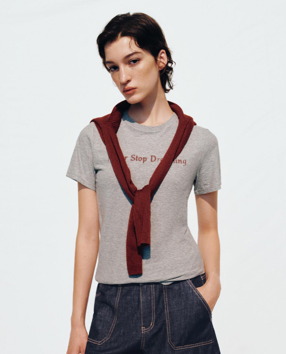 - Thiết kế cổ tròn, tay ngắn tối giản