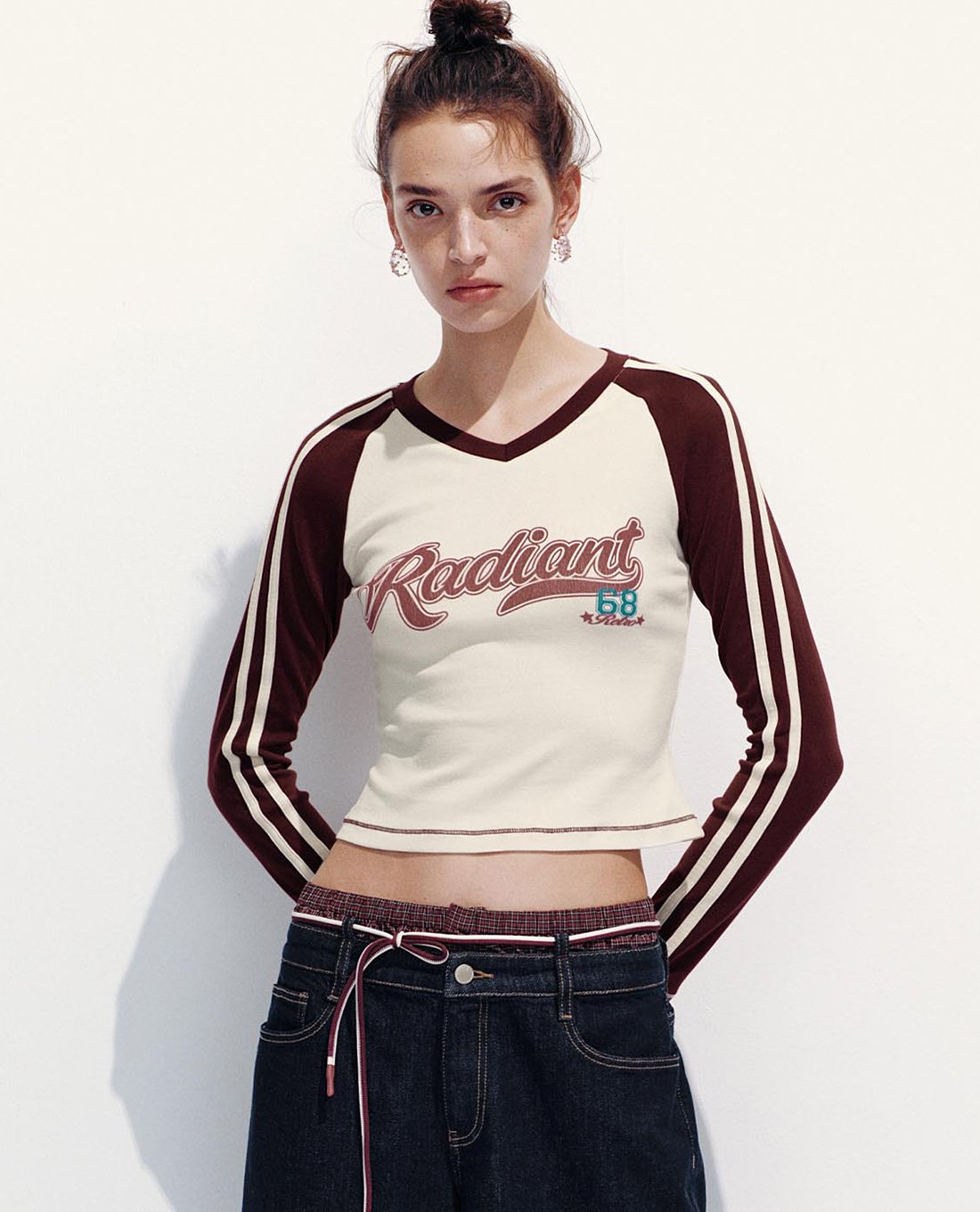 - Họa tiết chữ Radiant nổi bật giữa áo