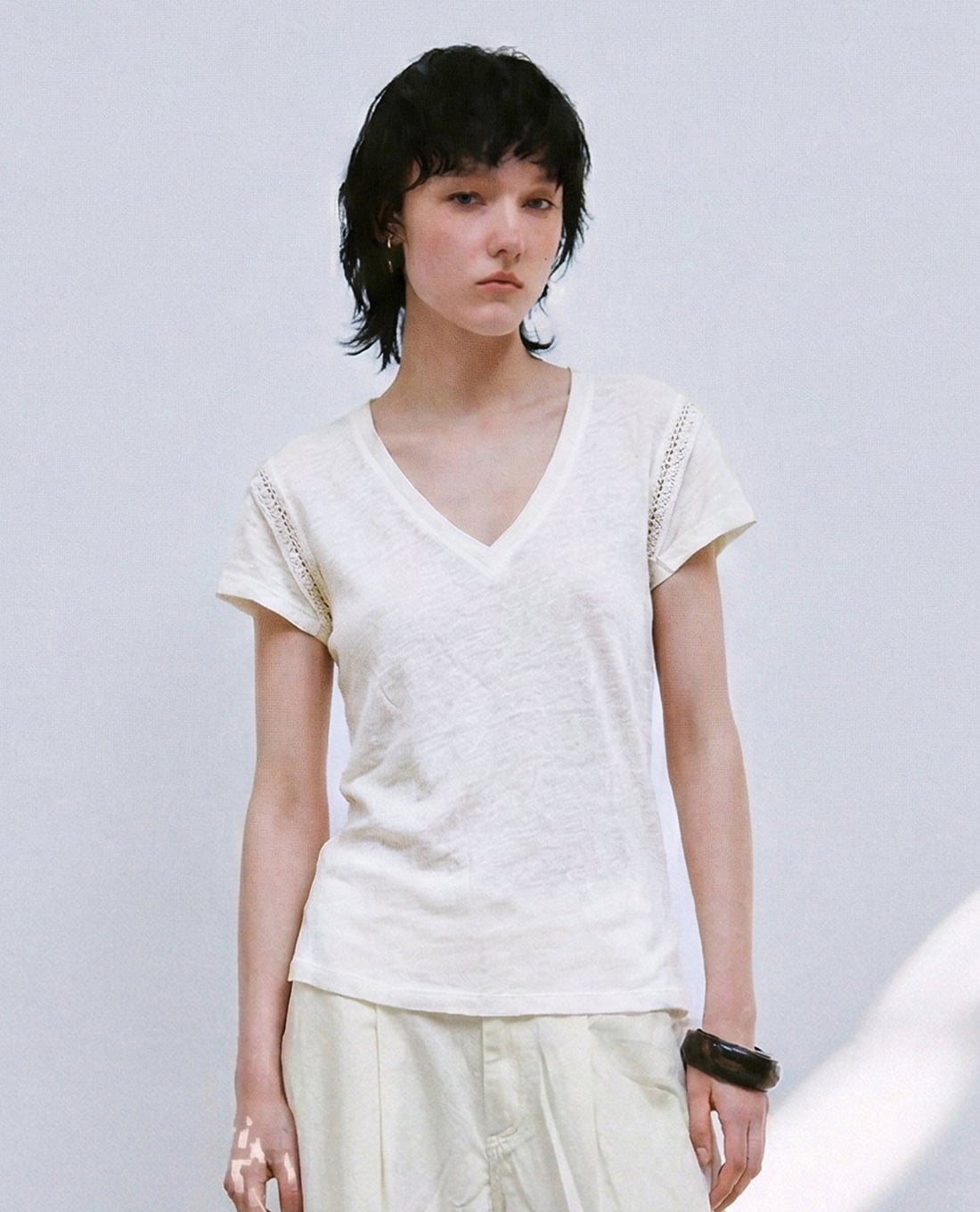- Thiết kế cổ V tôn lên phần cổ và xương quai xanh