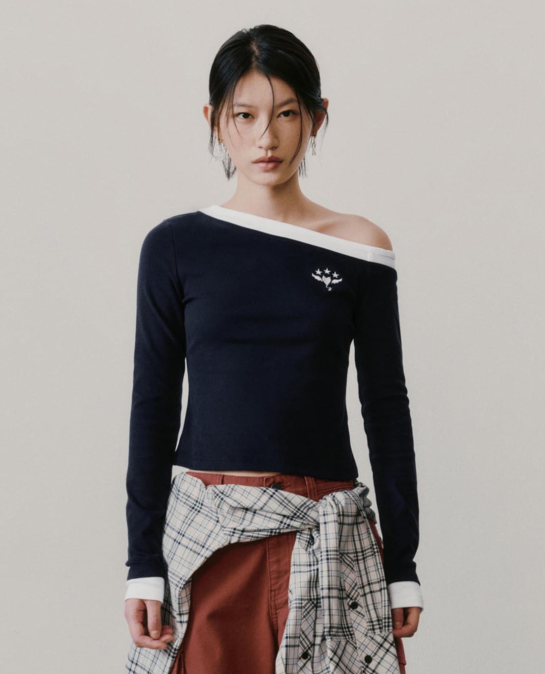 Áo thun nữ tay dài lệch vai phom ôm