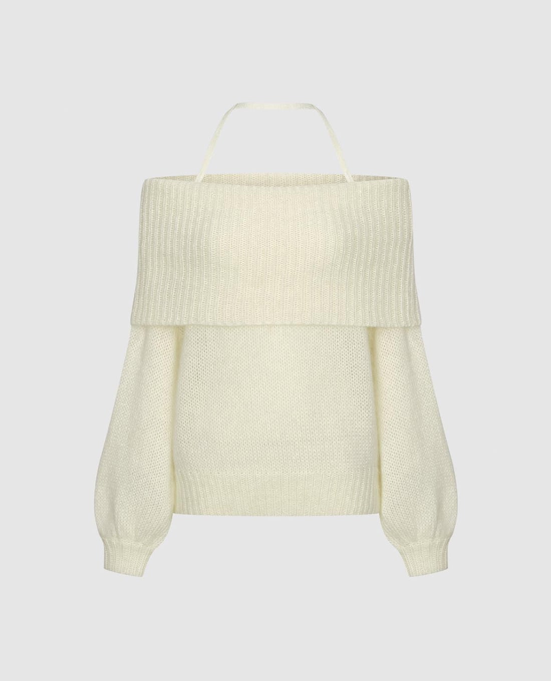 Áo trễ vai nữ dệt kim tay dài phối dây cổ