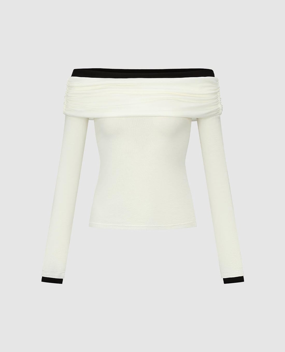 Áo trễ vai nữ tay dài phối viền phom ôm