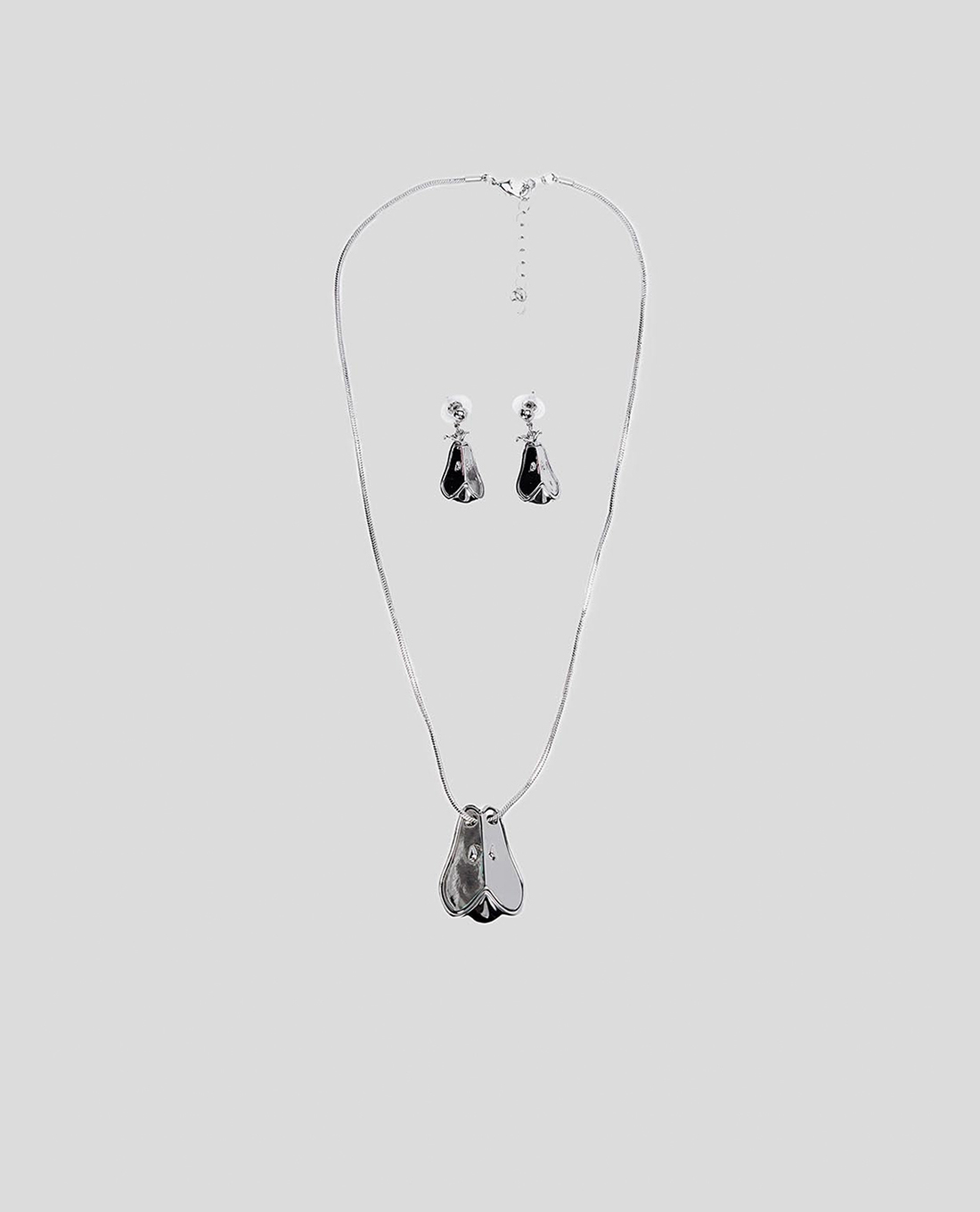 - Bộ trang sức gồm vòng cổ và khuyên tai đồng bộ về thiết kế