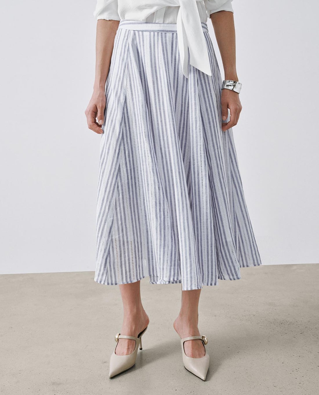 Chân váy chữ A midi kẻ sọc