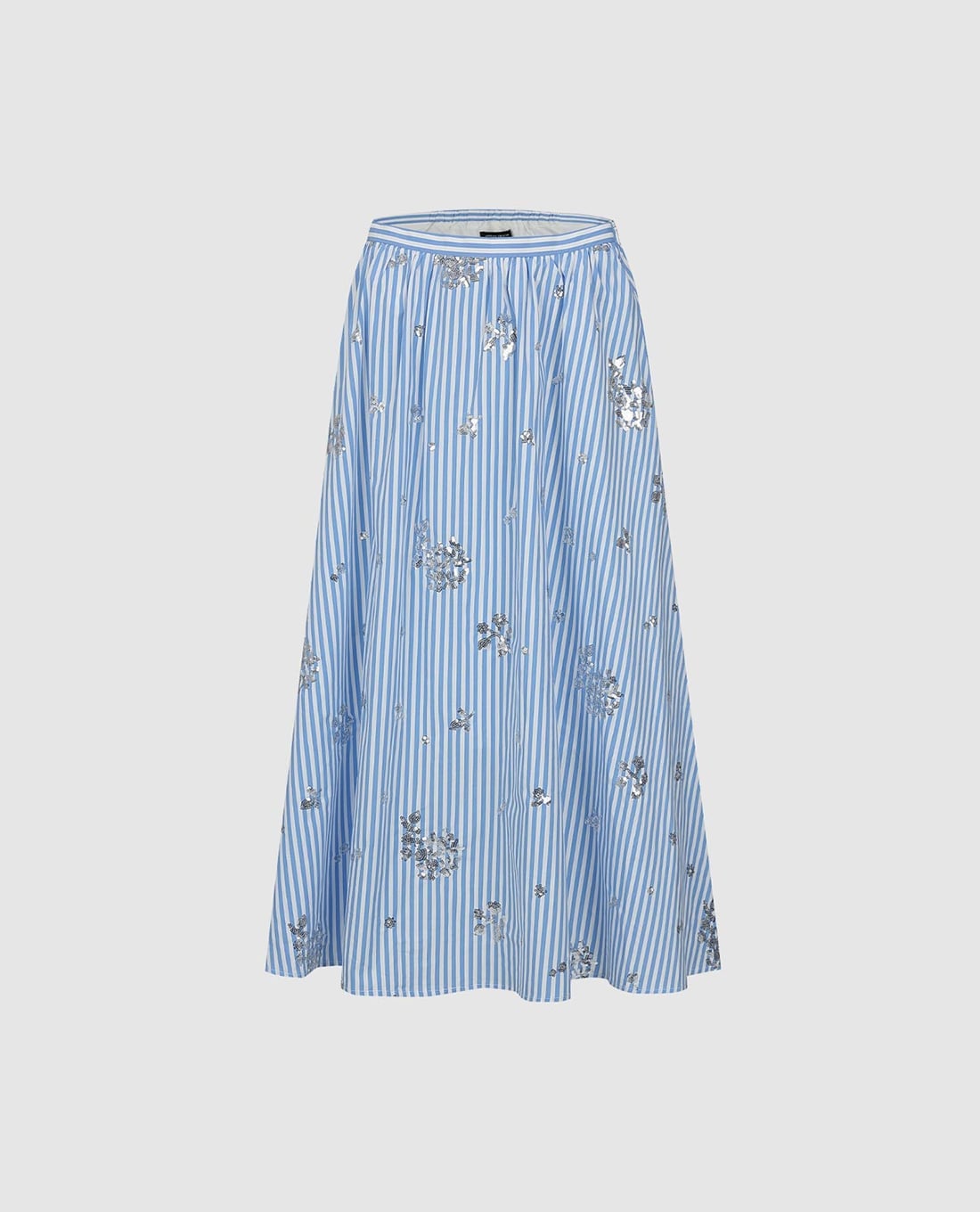 - Họa tiết sọc xanh trắng tạo hiệu ứng kéo dài vóc dáng