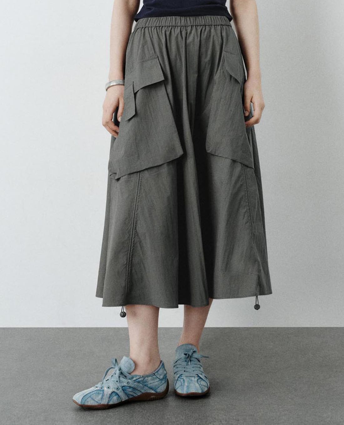 - Chi tiết túi hộp hai bên tạo điểm nhấn utilitarian nổi bật