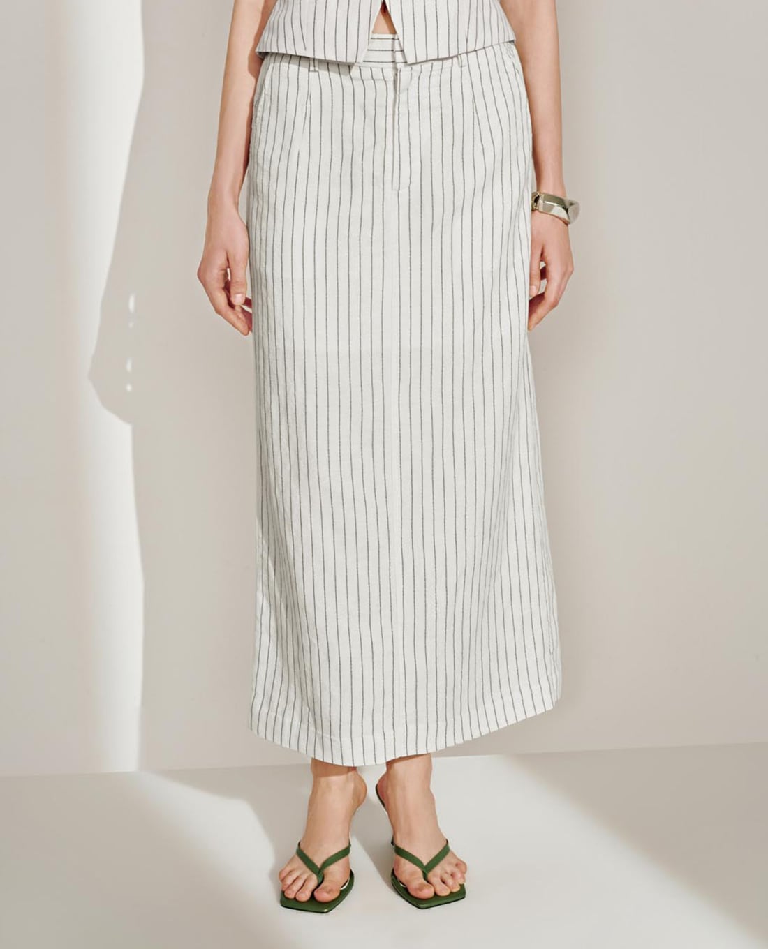Chân váy phom suông midi kẻ sọc