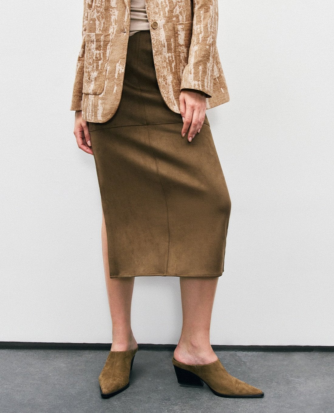 Chân váy phom suông midi xẻ tà Straight