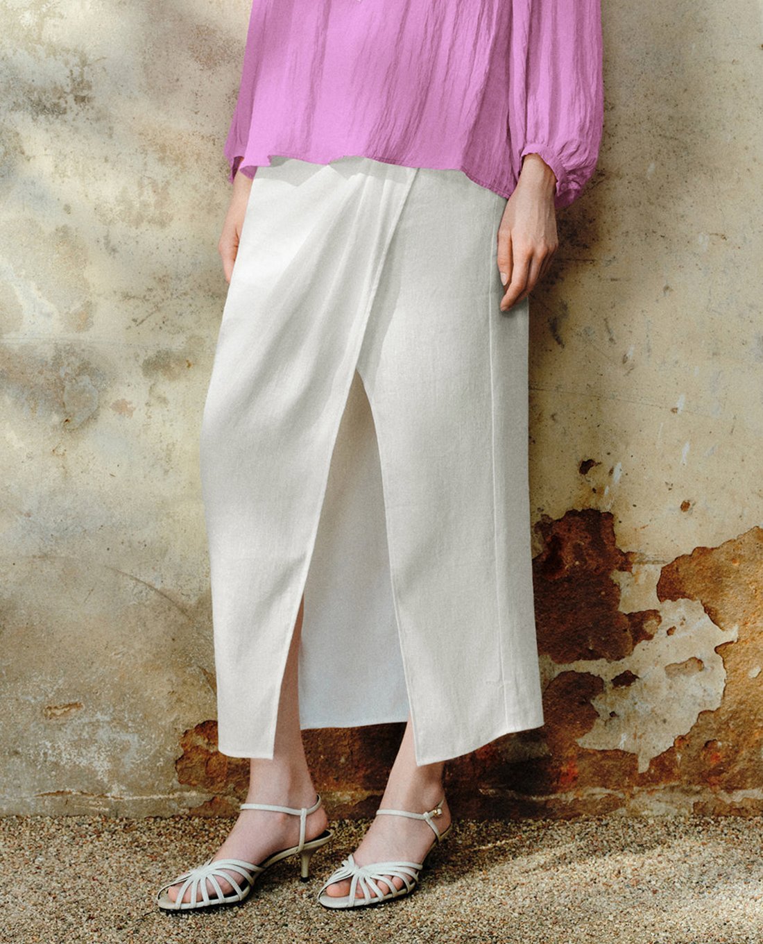 Chân váy quấn midi xẻ tà Straight
