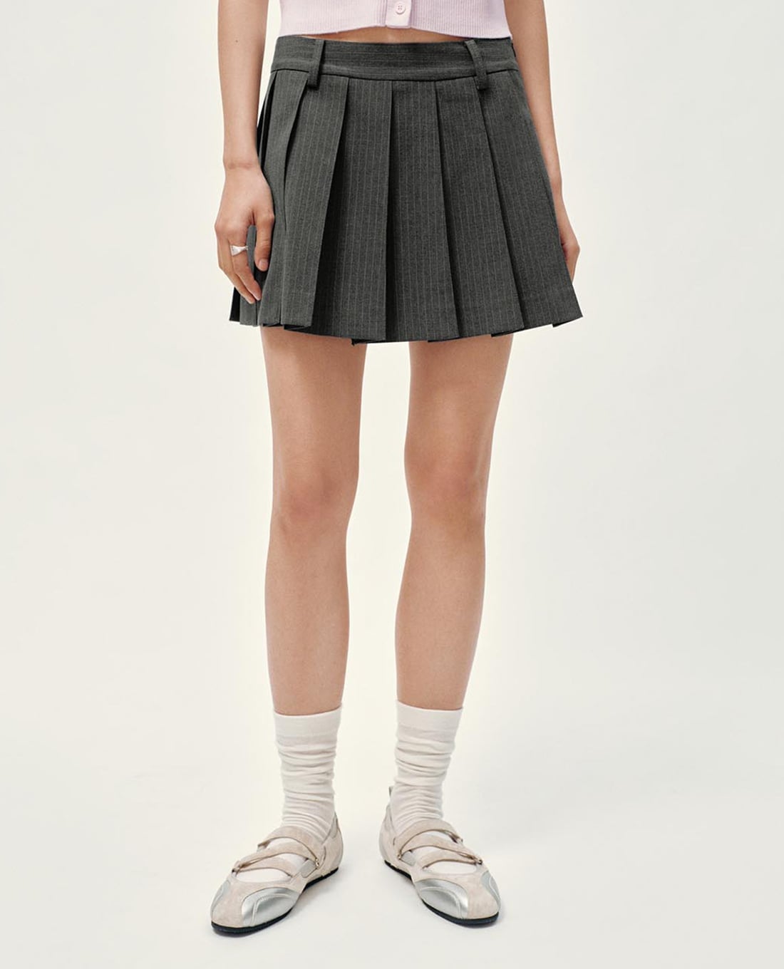 Chân váy xếp li mini kẻ sọc