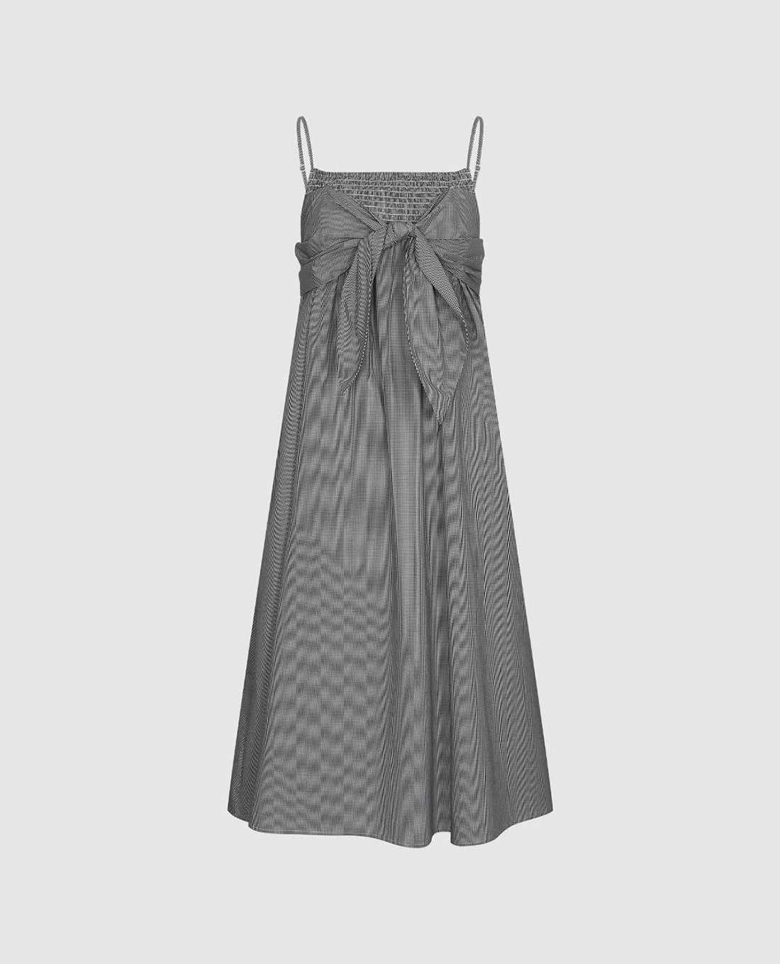 Đầm hai dây midi kẻ caro phối nơ