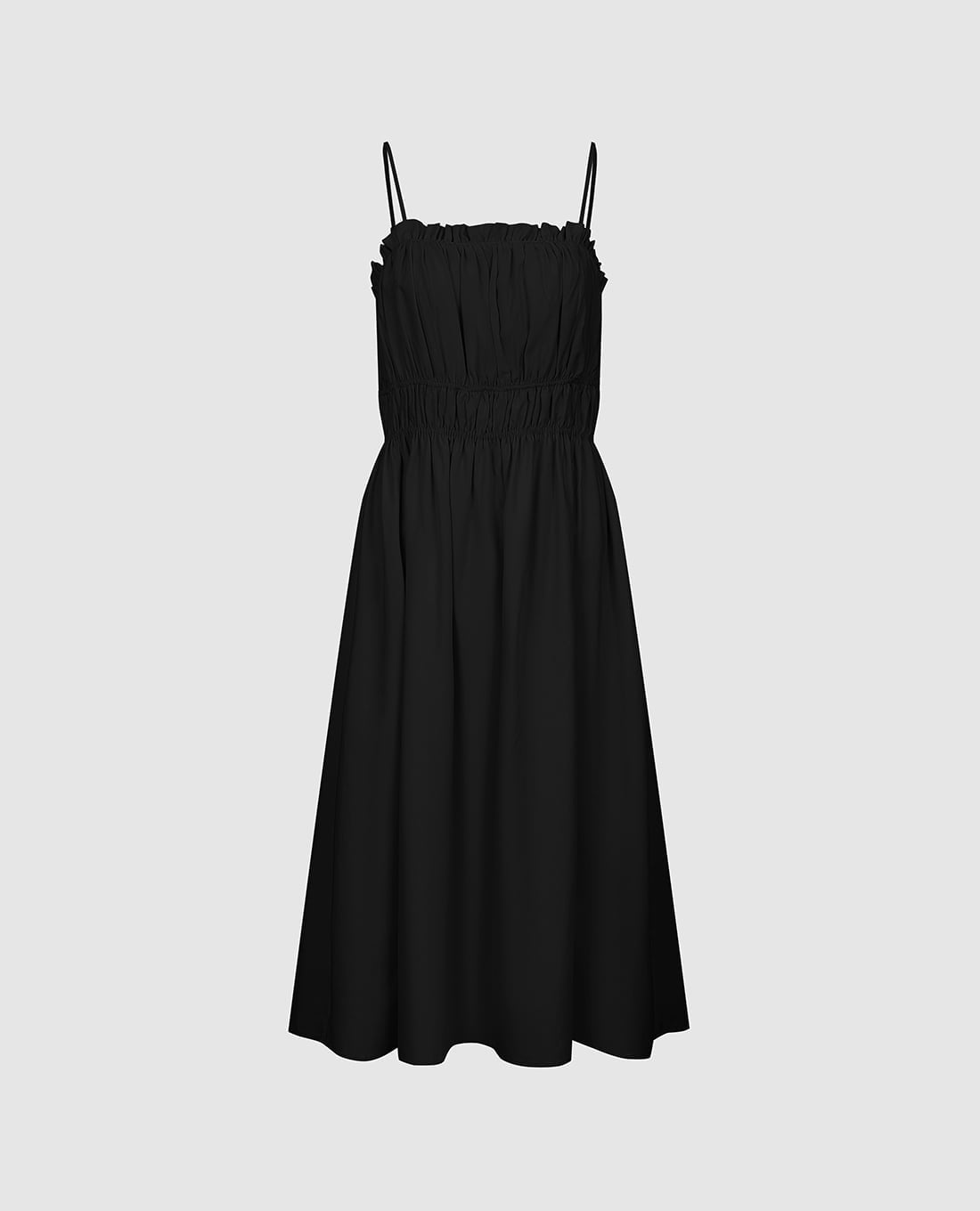 - Dáng midi xòe tạo hiệu ứng mềm mại và bay bổng