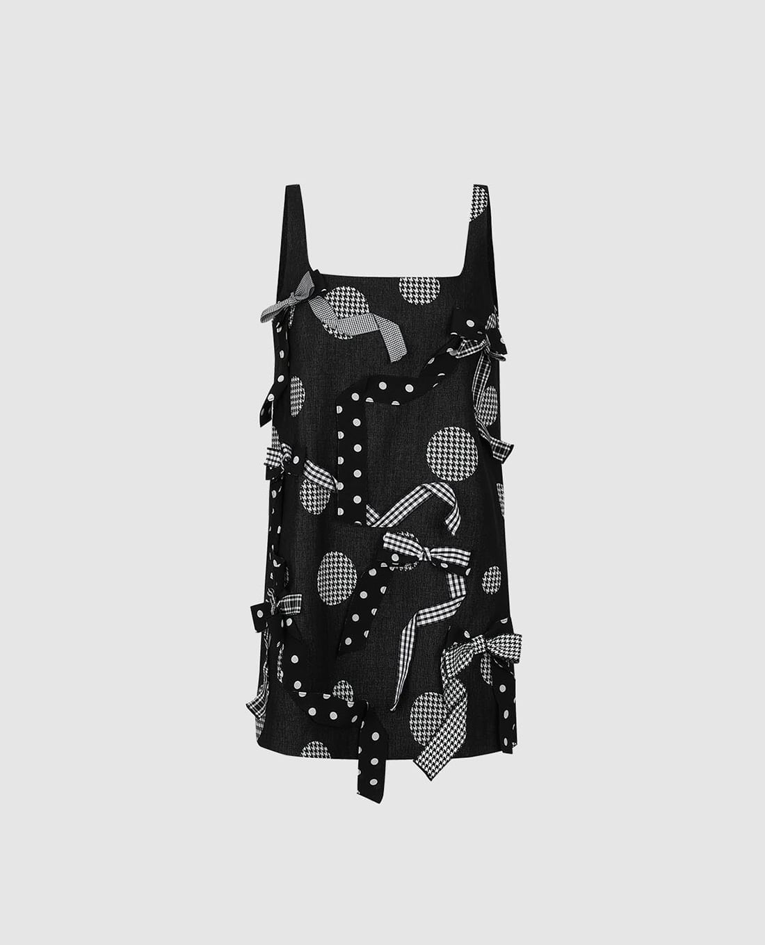 - Họa tiết in phối nơ độc đáo tạo điểm nhấn ấn tượng