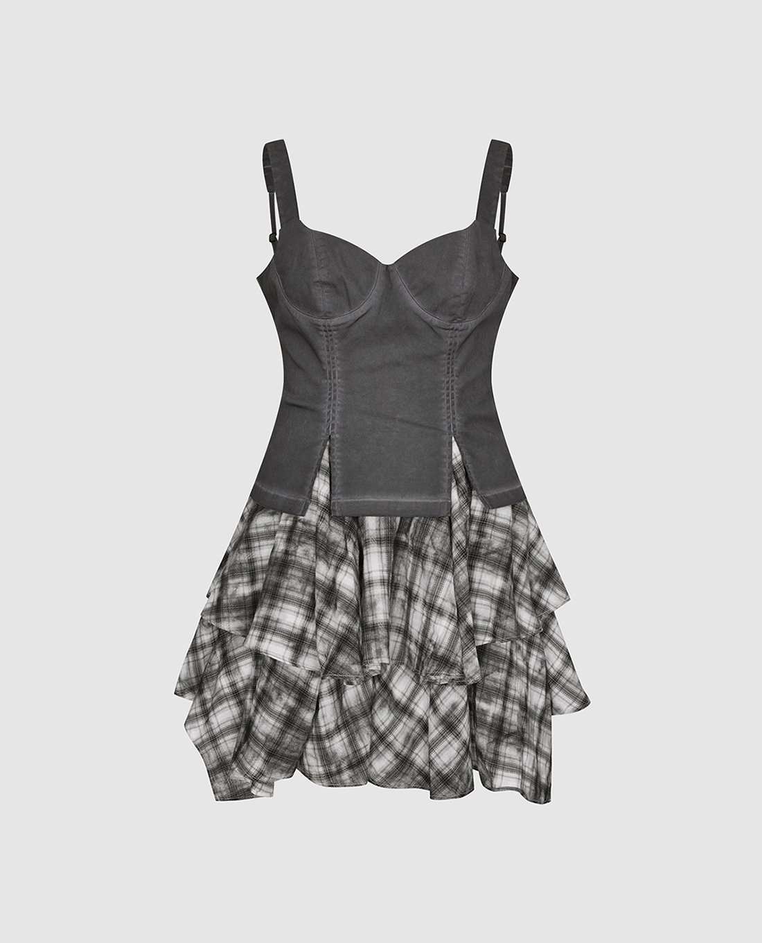 Đầm hai dây mini xếp tầng sọc caro