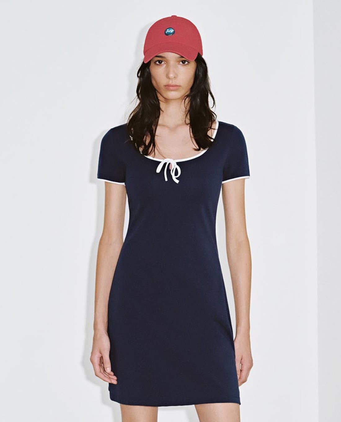 - Cổ vuông phối viền tương phản tạo điểm nhấn nữ tính