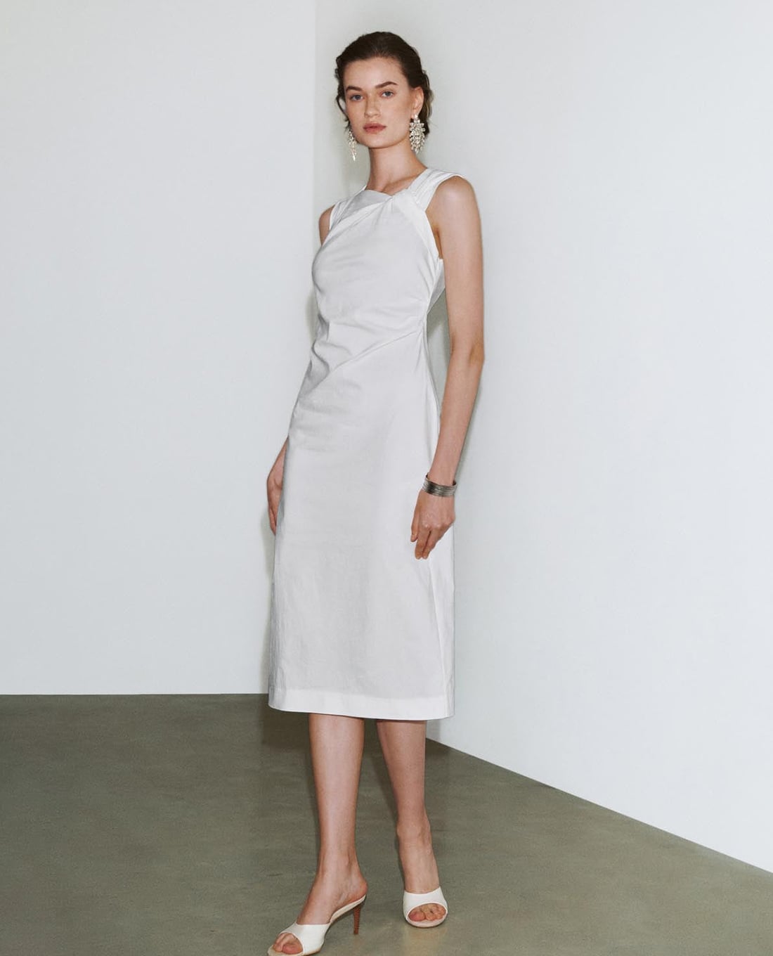 Đầm sát nách midi cổ lệch phom ôm