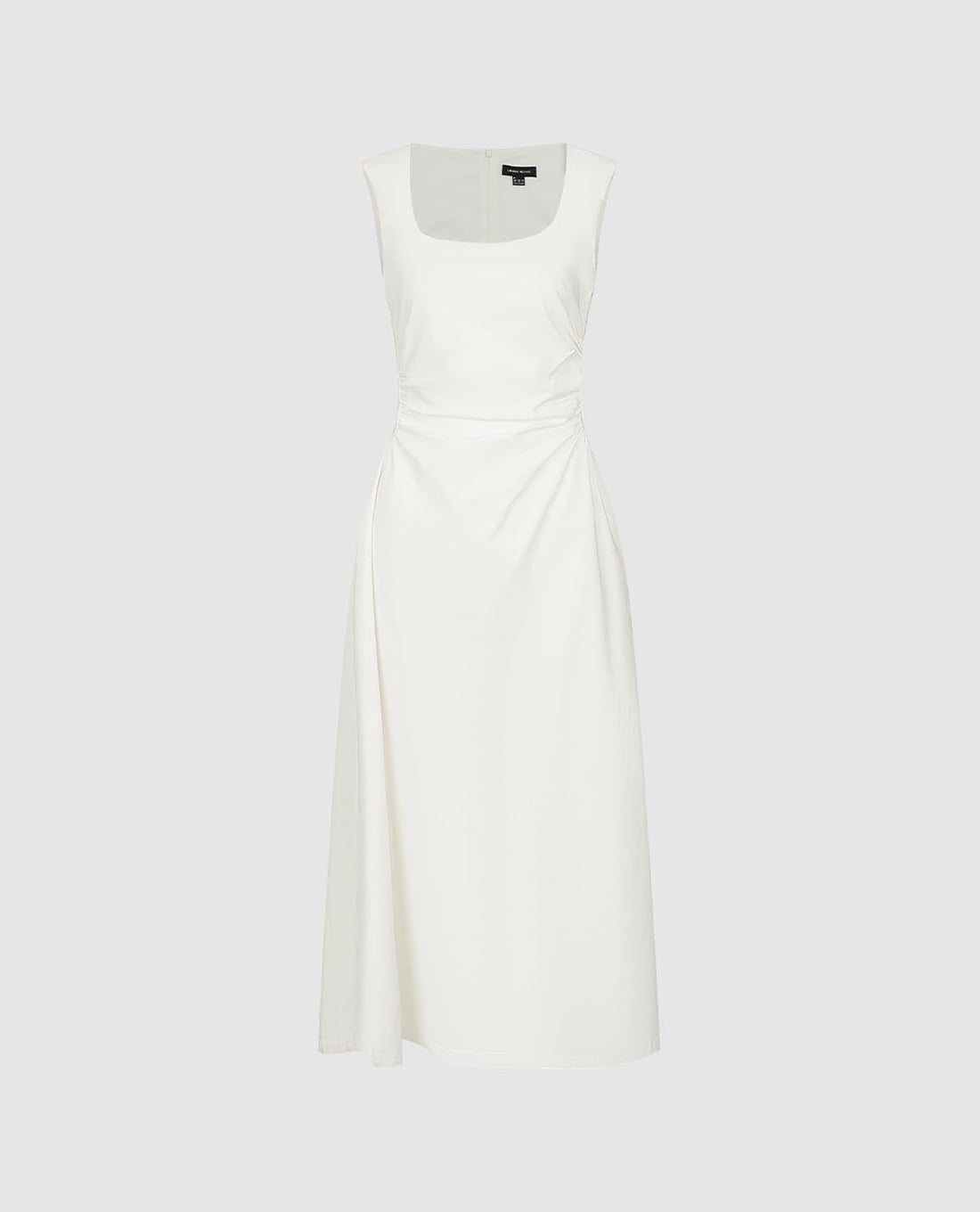 - Thiết kế đầm sát nách cổ vuông trẻ trung hiện đại