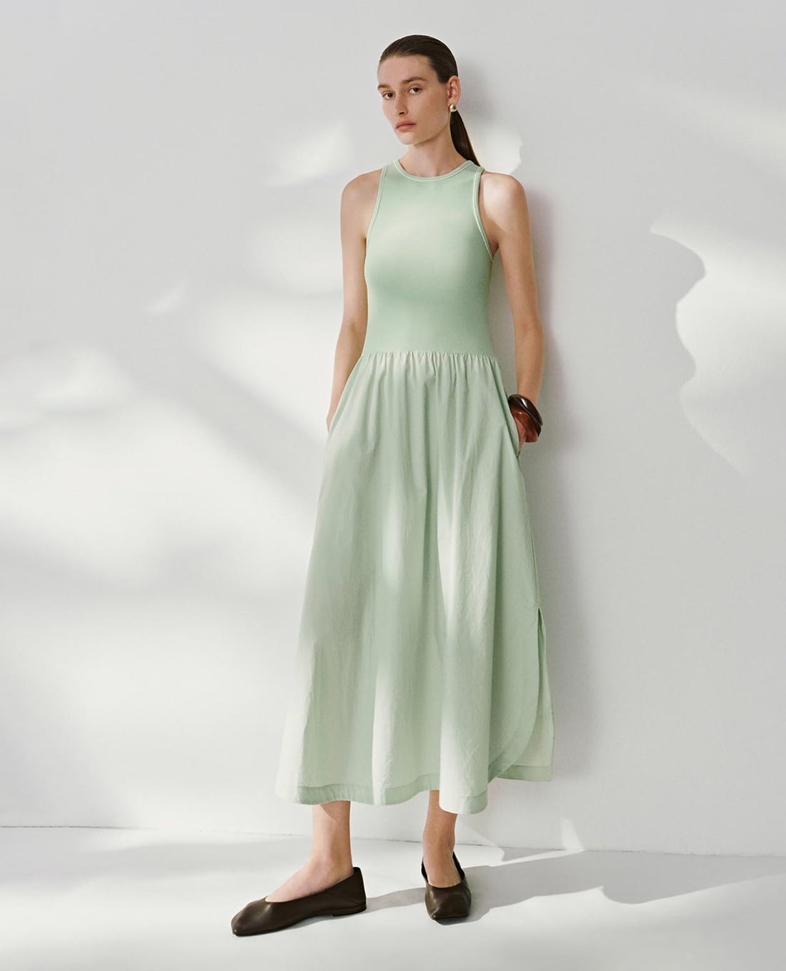 Đầm sát nách midi dáng xoè