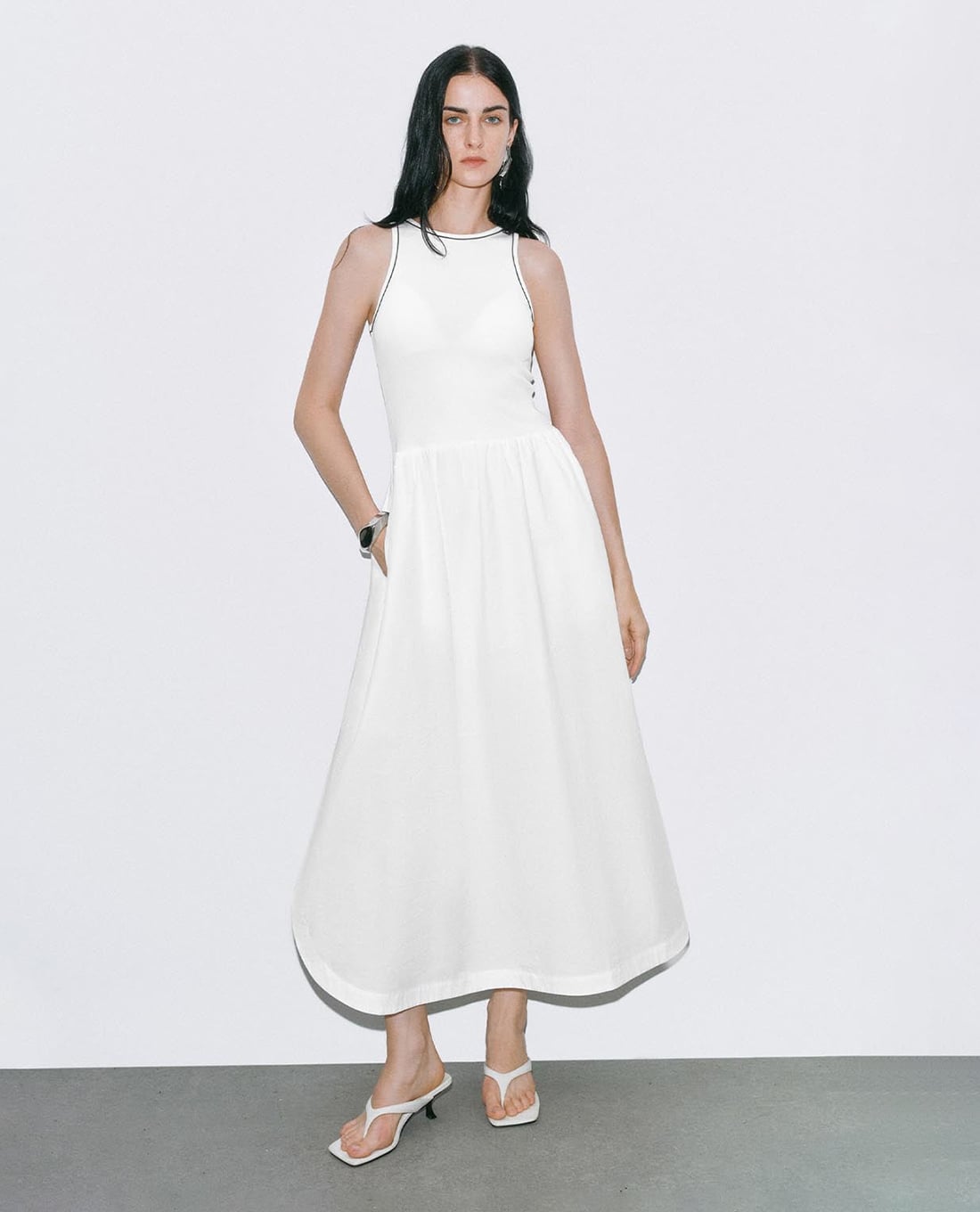 Đầm sát nách midi dáng xoè