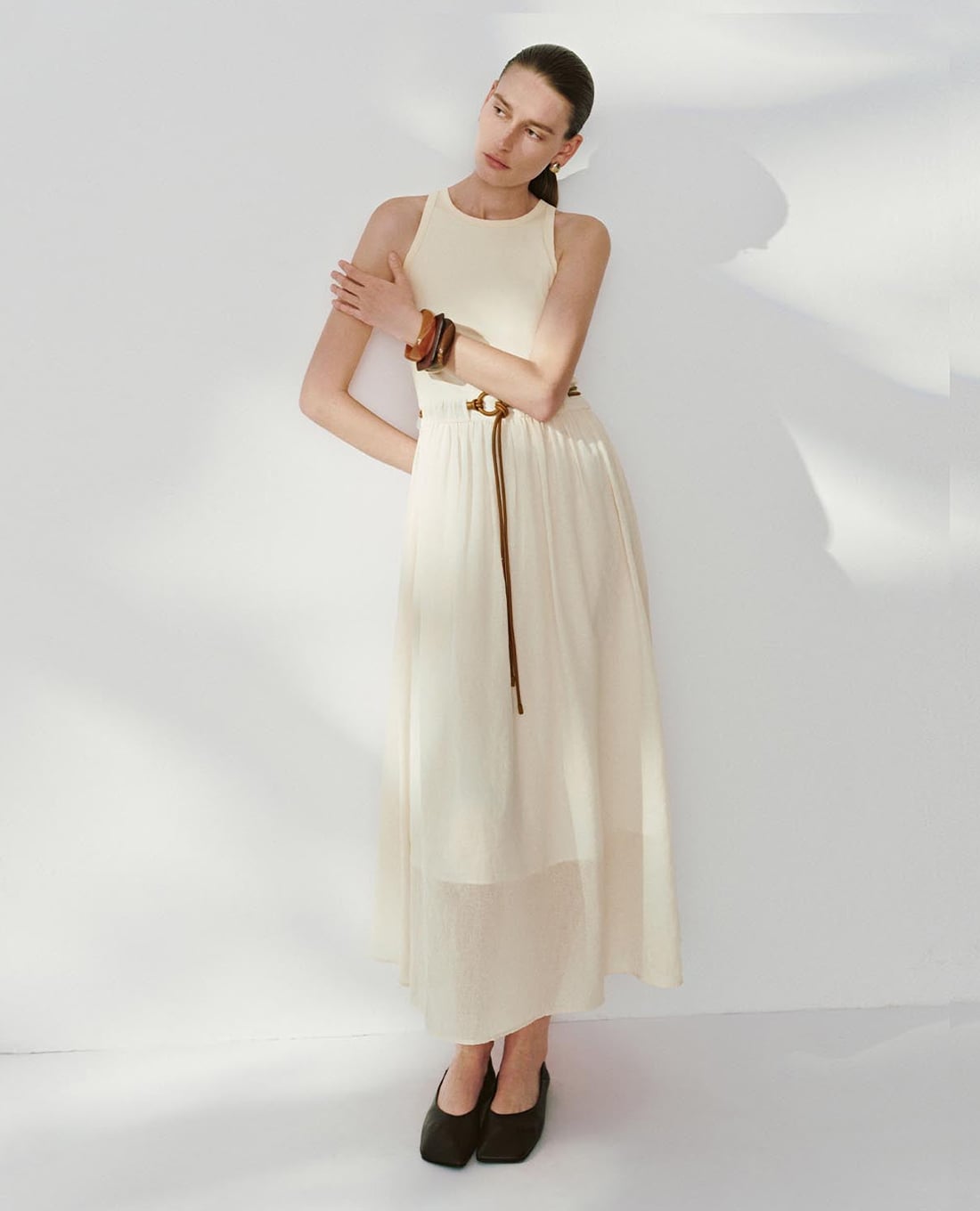 Đầm sát nách midi phối thắt lưng