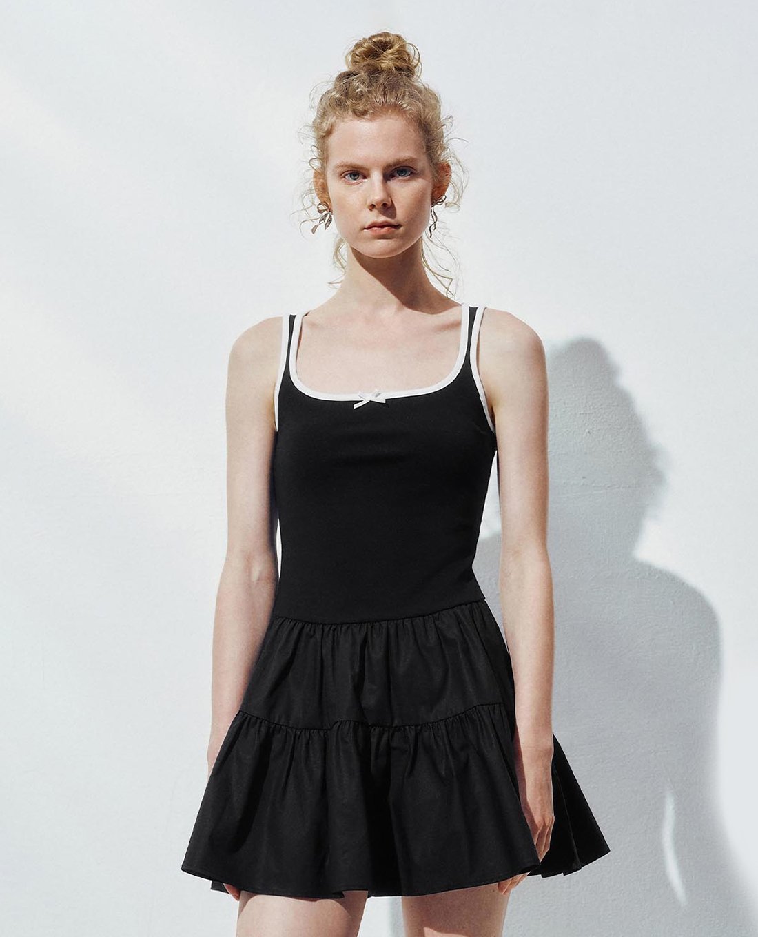 - Phần thân trên ôm sát phối viền trắng và nơ nhỏ