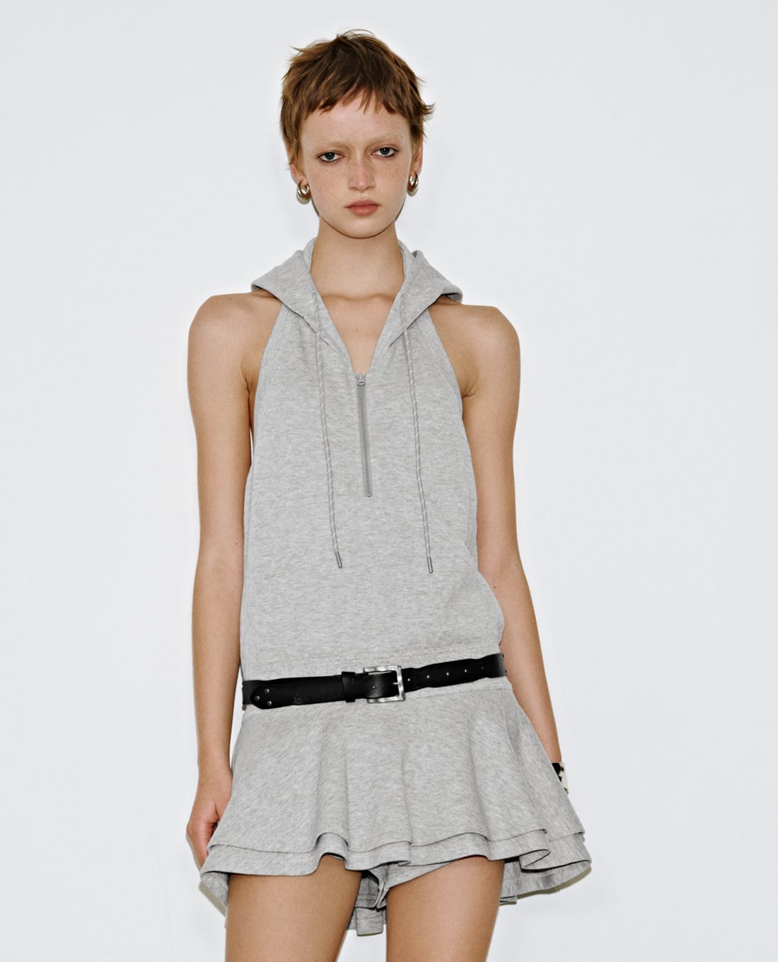 - Thiết kế đầm không tay kết hợp mũ trẻ trung, năng động