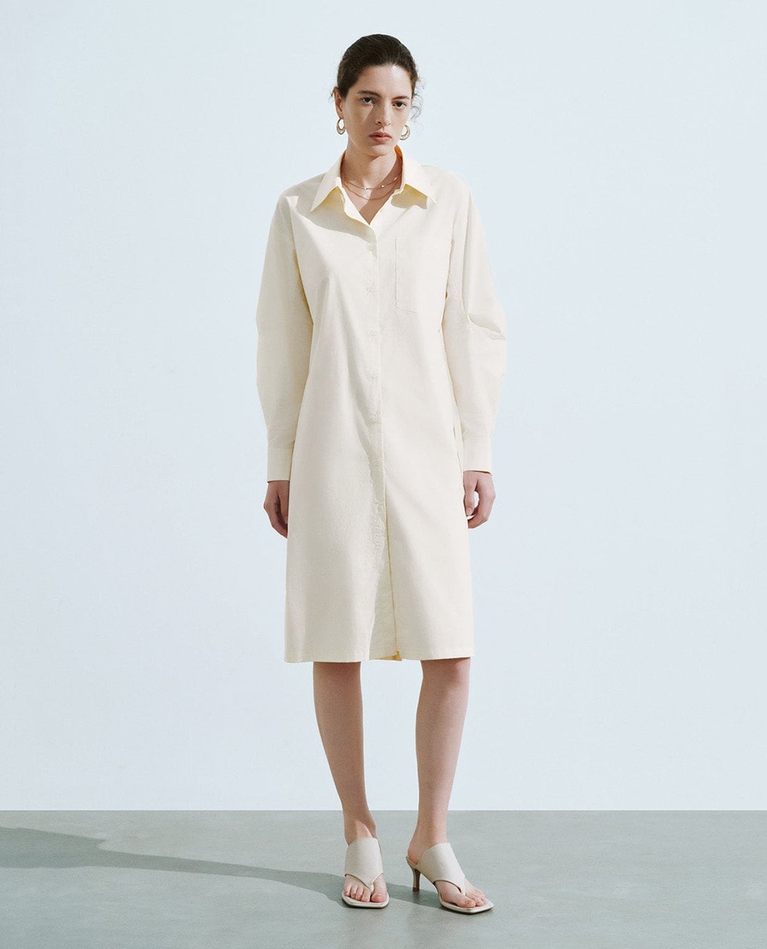 - Dáng đầm sơ mi cổ bẻ tay dài hiện đại