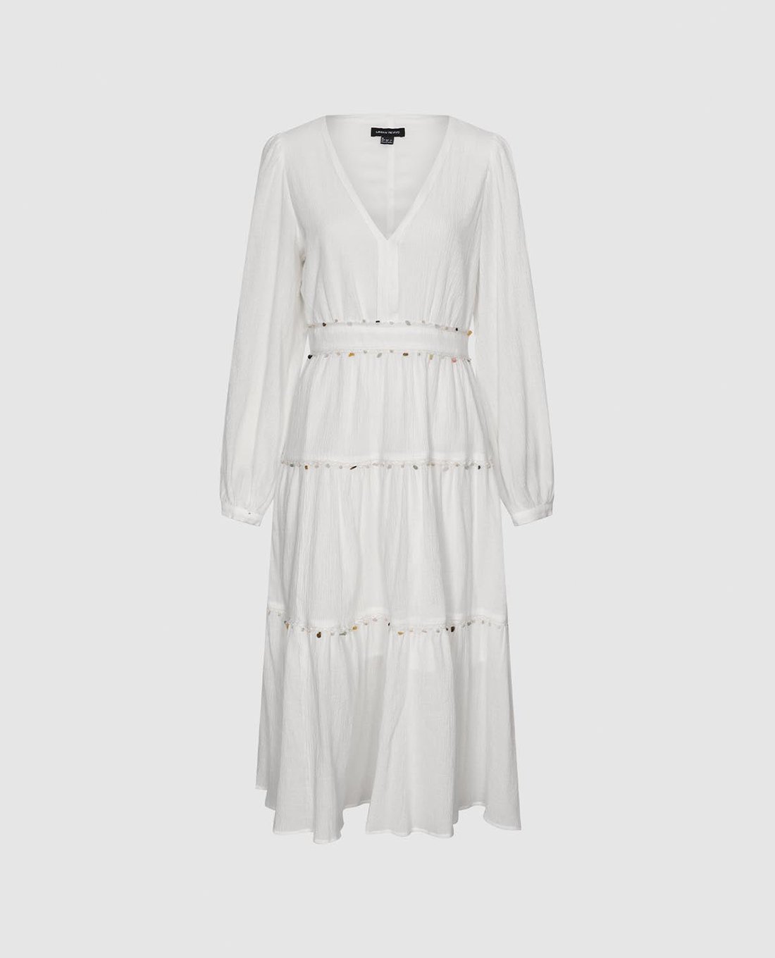 Đầm xếp tầng midi cổ V đính hạt