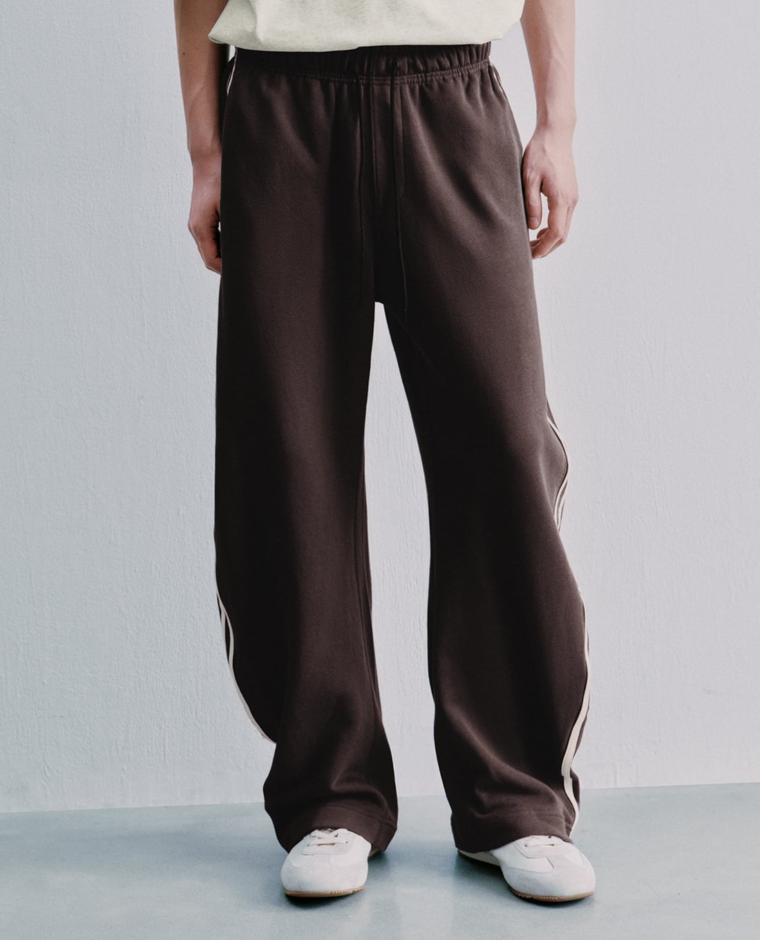 - Thiết kế quần thể thao ống rộng với sọc dọc hai bên