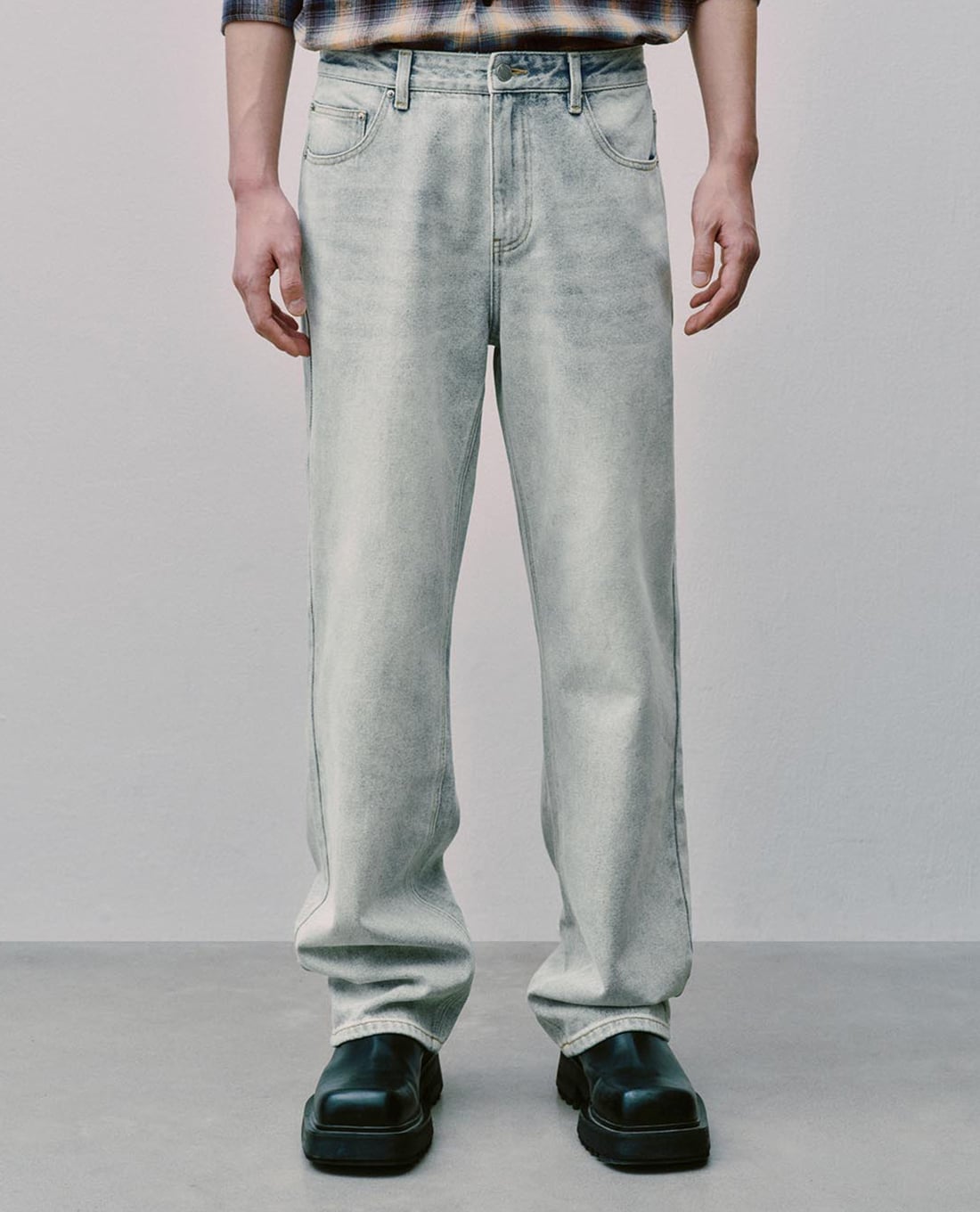 Quần jeans nam ống đứng wash bạc cổ điển