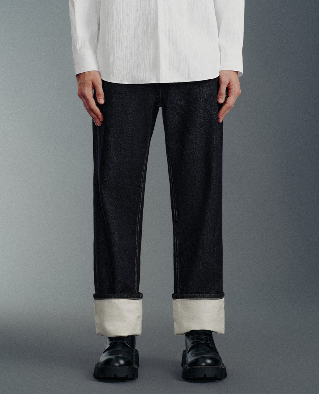 Quần jeans nam ống đứng xắn gấu Rolled Up Hem Straight