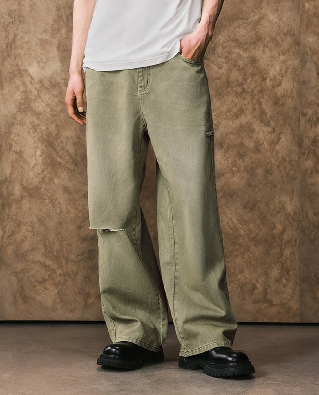 - Chi tiết rách ở đầu gối tạo điểm nhấn độc đáo, thời thượng
