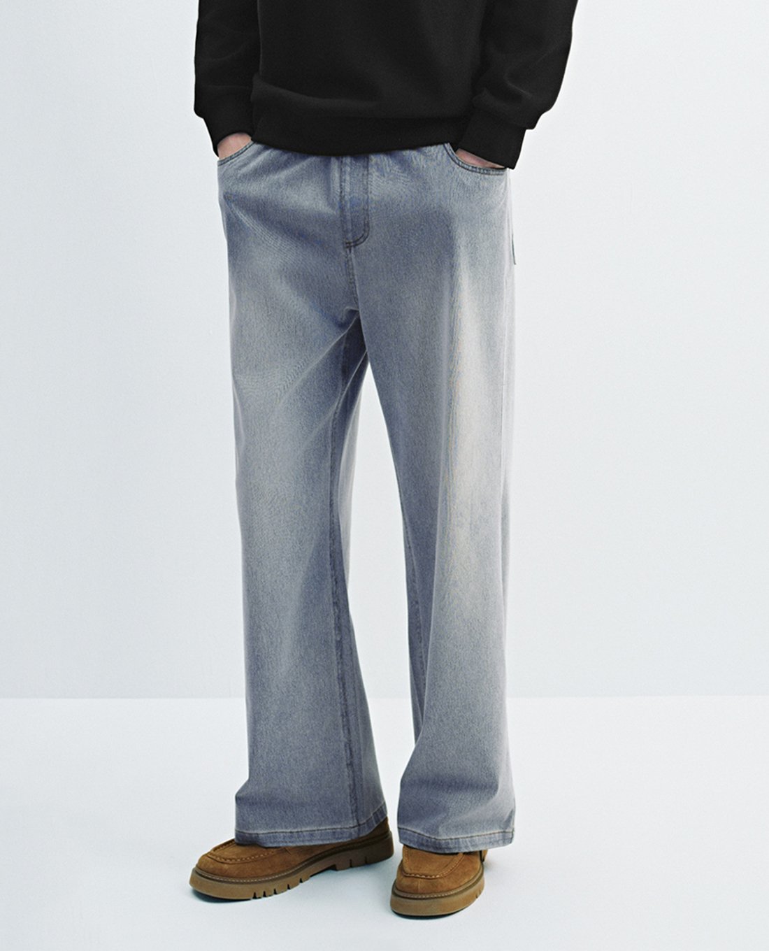 Quần jeans nam ống rộng lưng thun phối dây rút
