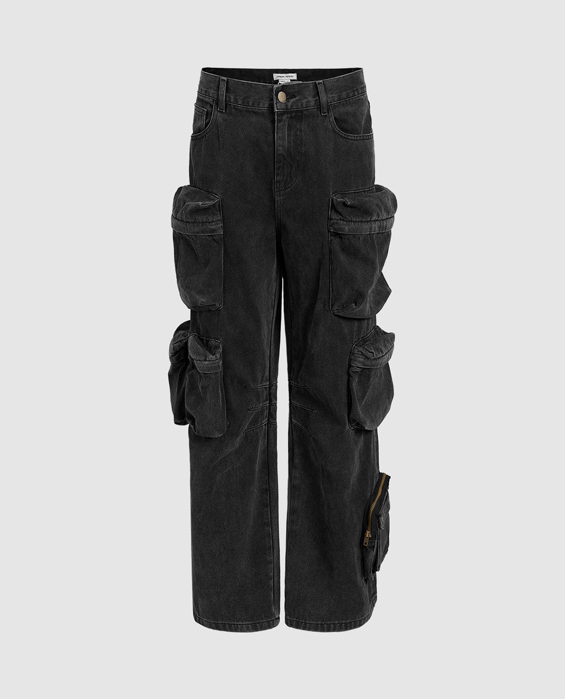 Quần jeans nam ống rộng phối túi hộp Multi-Pocket