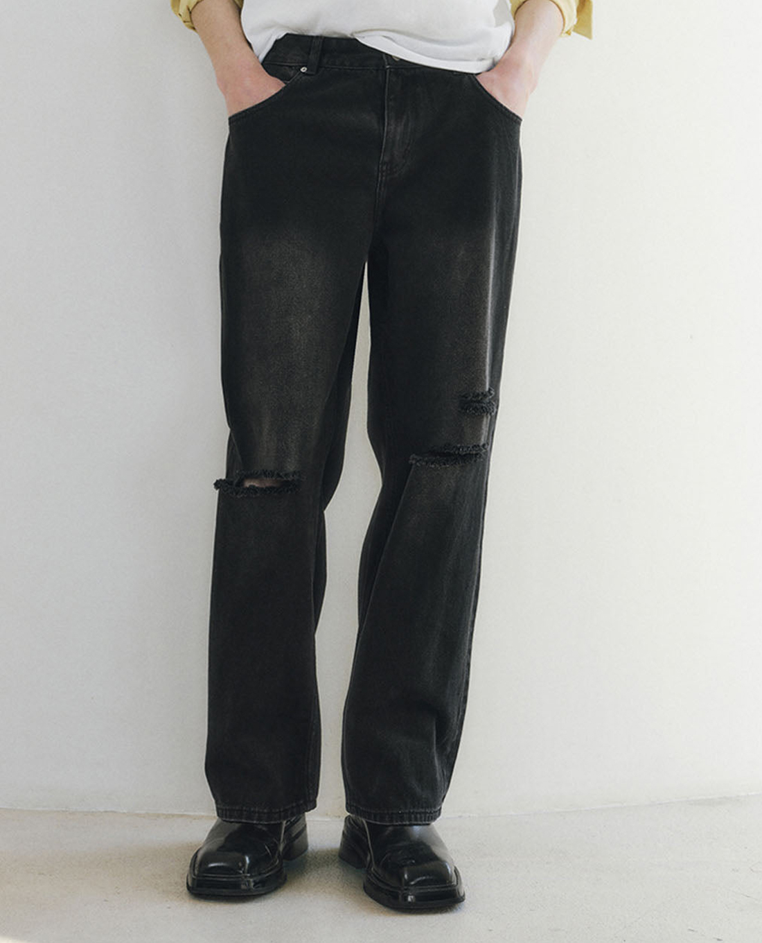 - Chi tiết rách ngang gối ở hai ống quần tạo nên vẻ ngoài cá tính