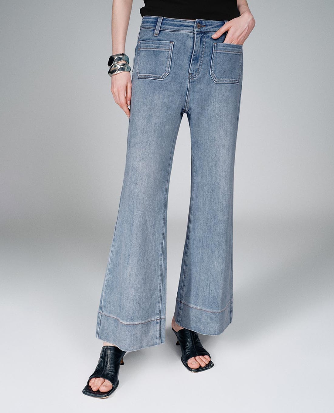 Quần jeans nữ ống loe wash bạc