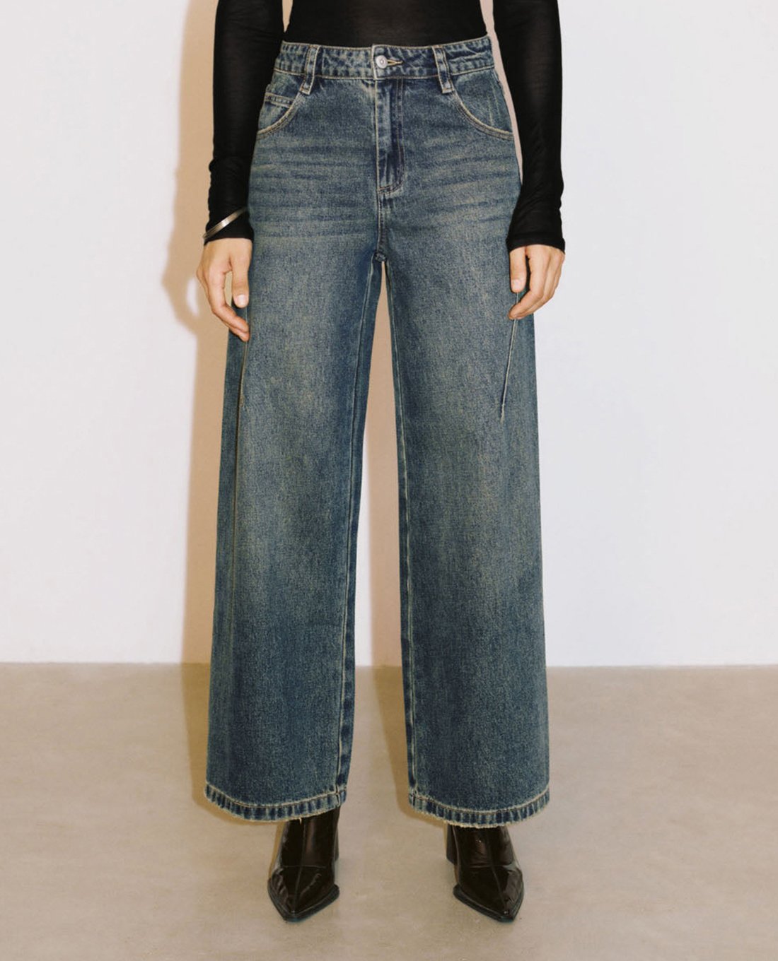Quần jeans nữ ống rộng hiện đại