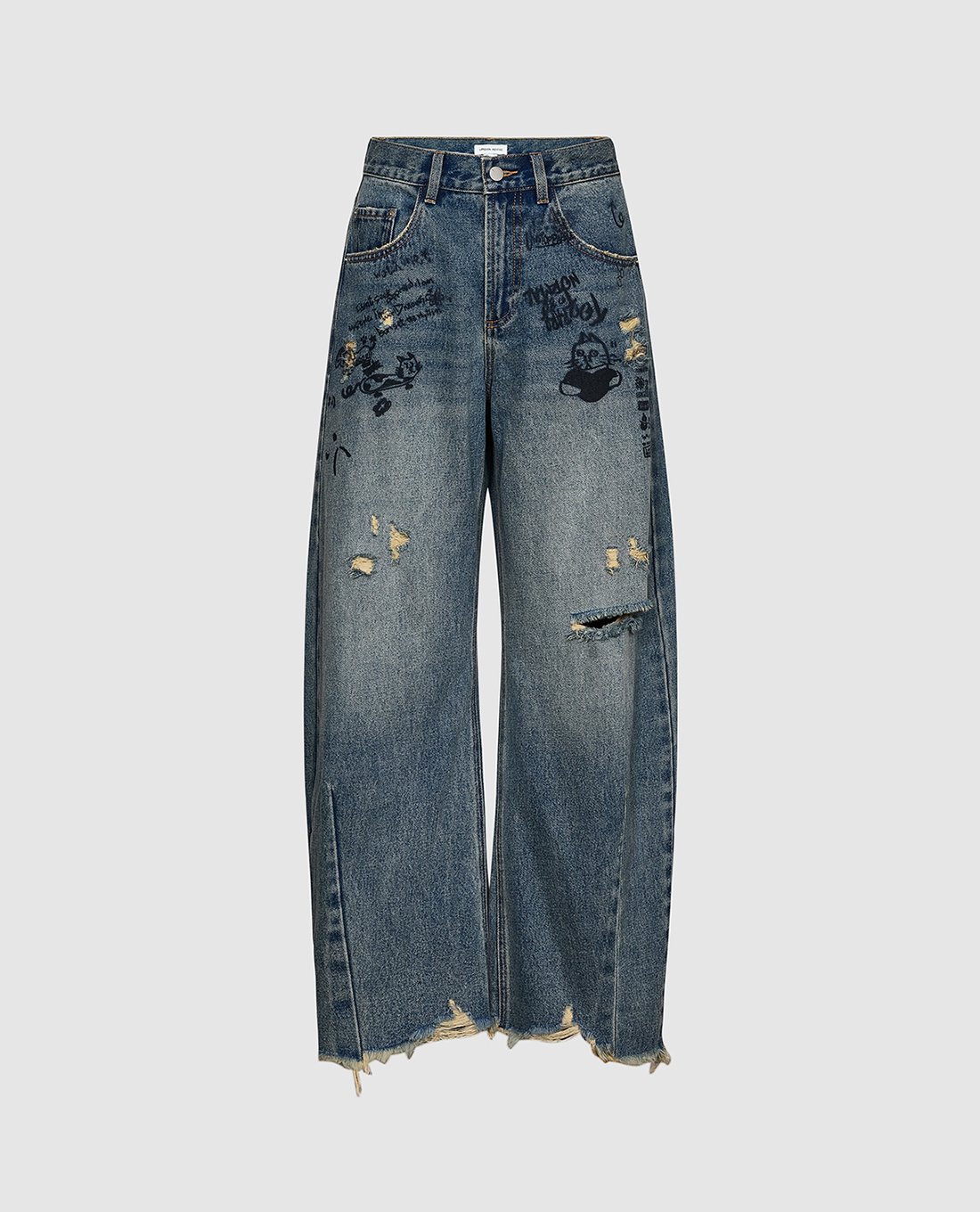 - Các chi tiết rách, sờn gấu tạo điểm nhấn phá cách