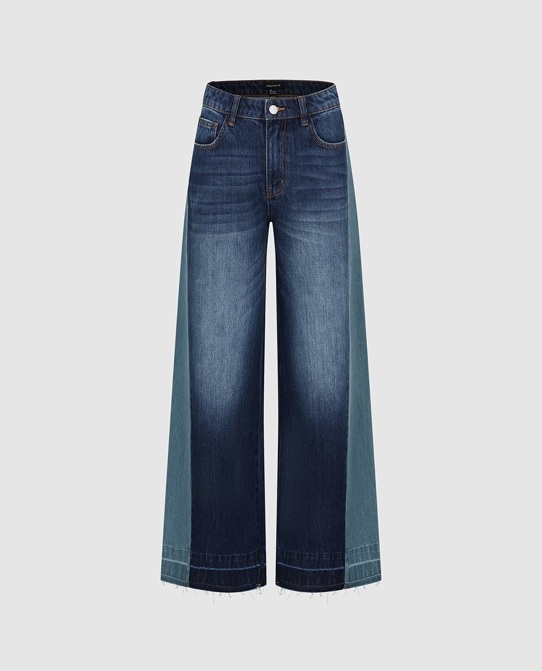 Quần jeans nữ ống rộng phối màu wash bạc