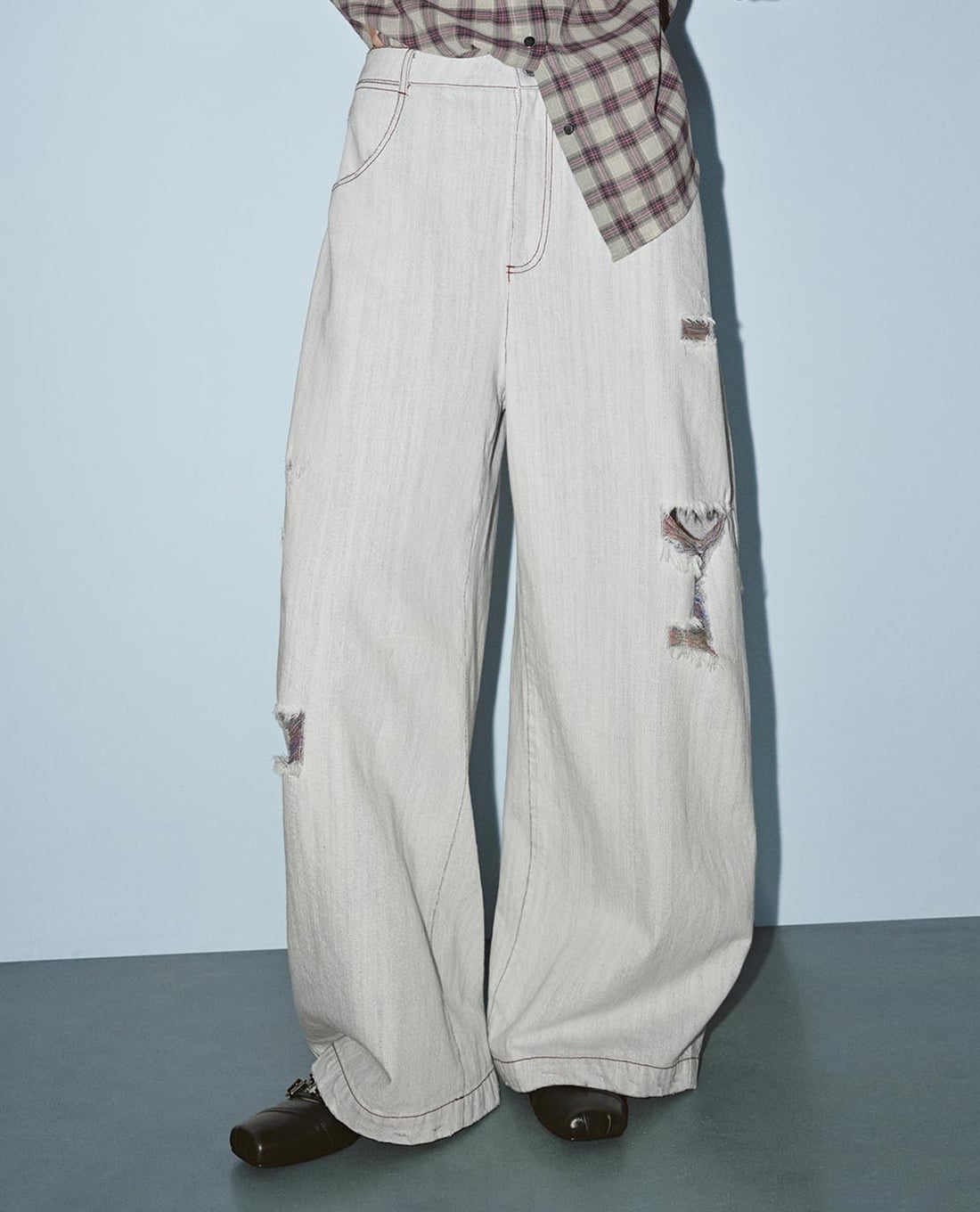 - Chi tiết rách nhẹ ở gối tăng điểm nhấn bụi bặm nổi bật