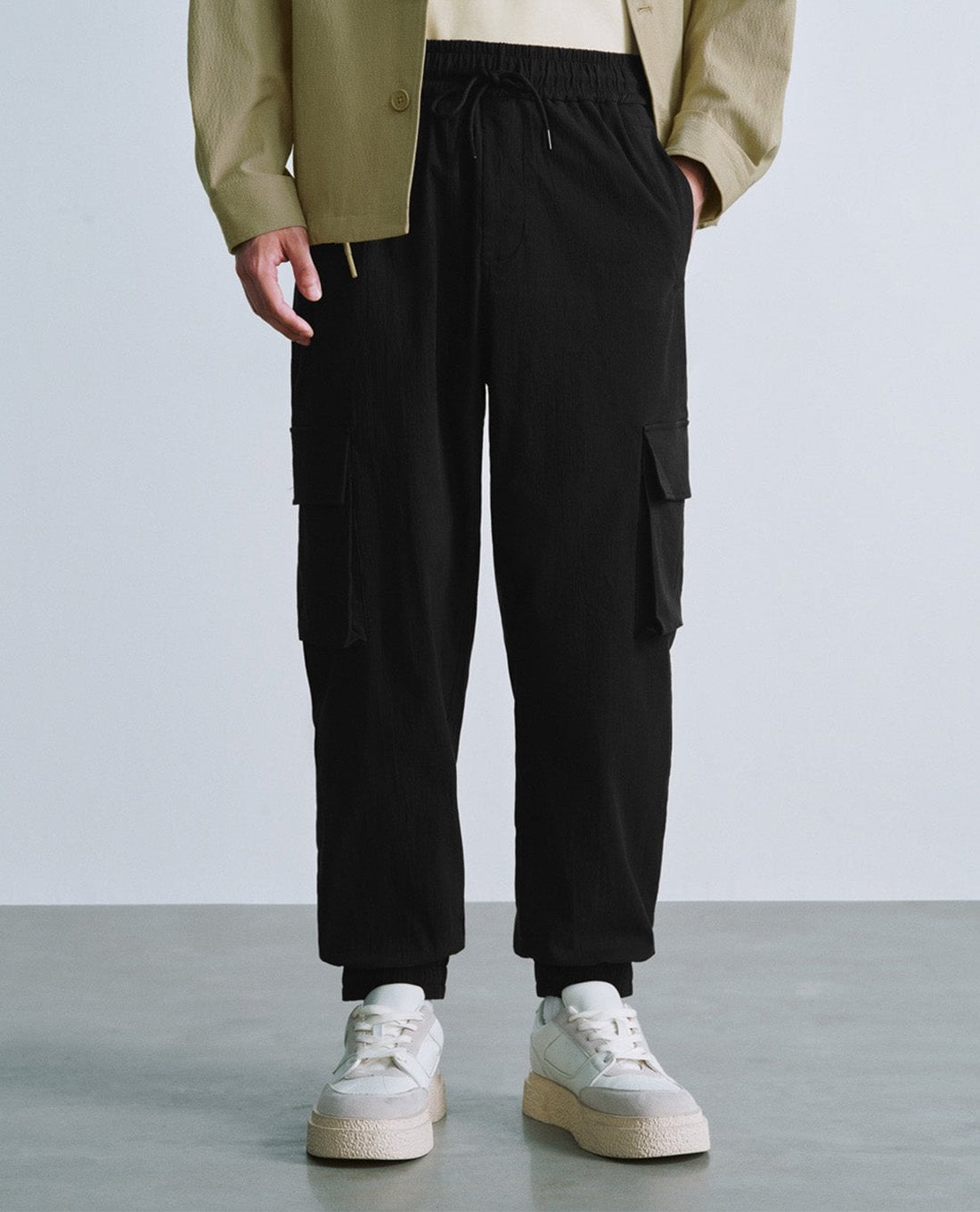 Quần nam ống rộng lưng thun phối túi hộp thời trang