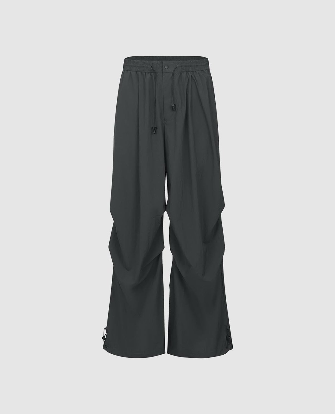 - Chi tiết dây rút ở gấu quần giúp biến tấu phom dáng từ suông rộng sang thu gọn theo ý thích