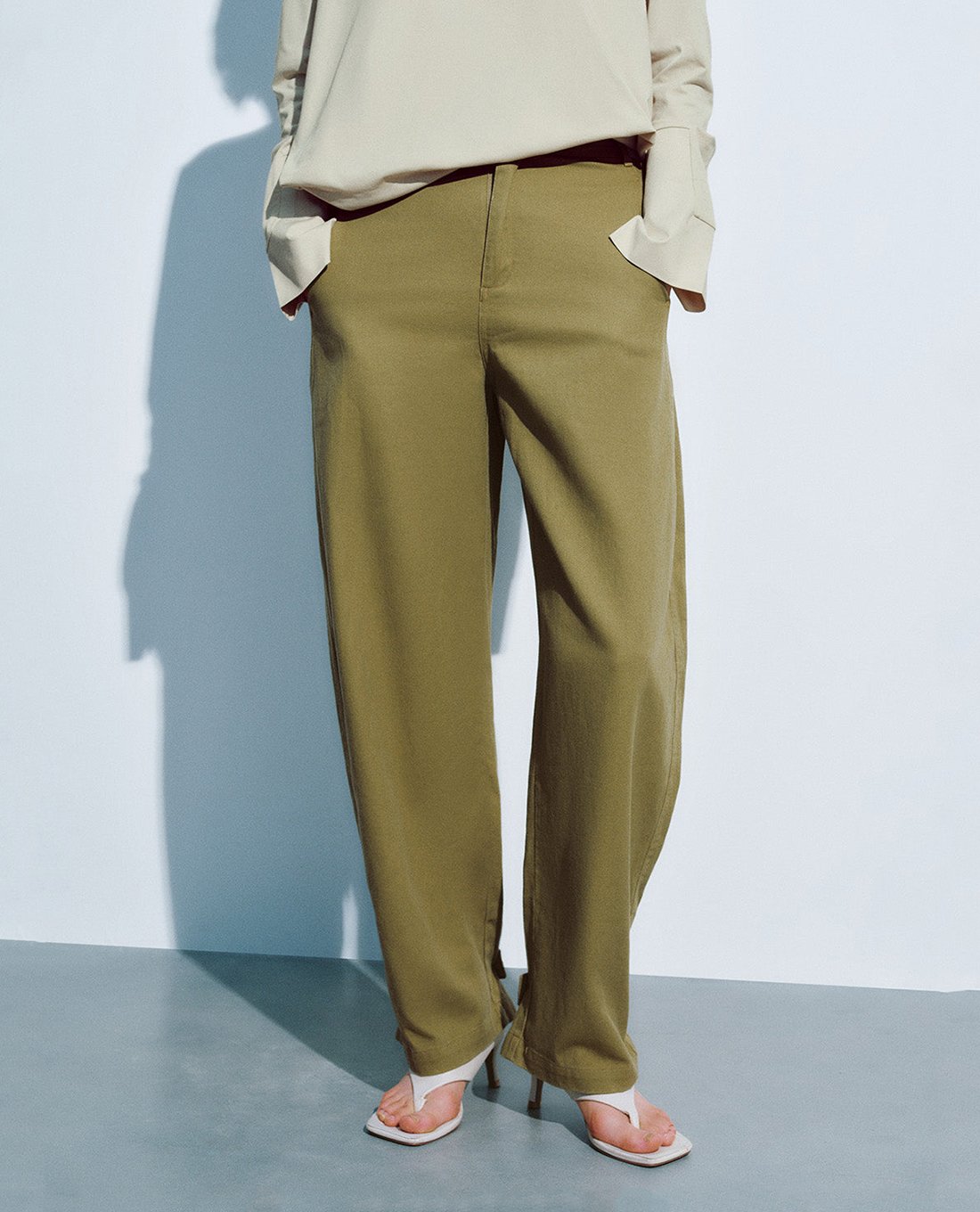 - Cạp quần bản vừa, có thể kết hợp cùng thắt lưng