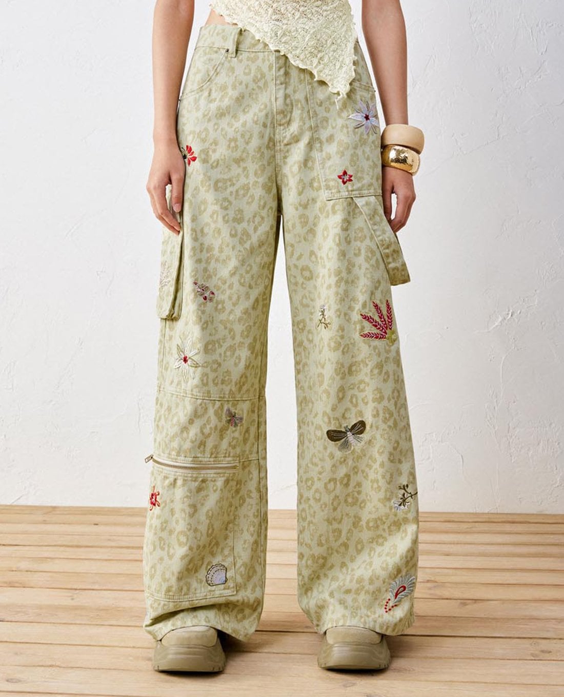 - Họa tiết da báo thời thượng kết hợp thêu hoa và côn trùng